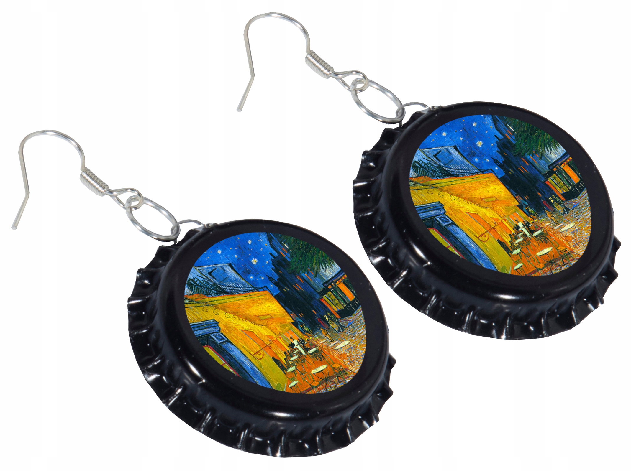 Серьги ручной работы, выполненные в технике художественного декупажа на пивных крышках. Все это мы защищаем водостойким глянцевым лаком, чтобы серьги прослужили вам долго и не потемнели и не повредились.