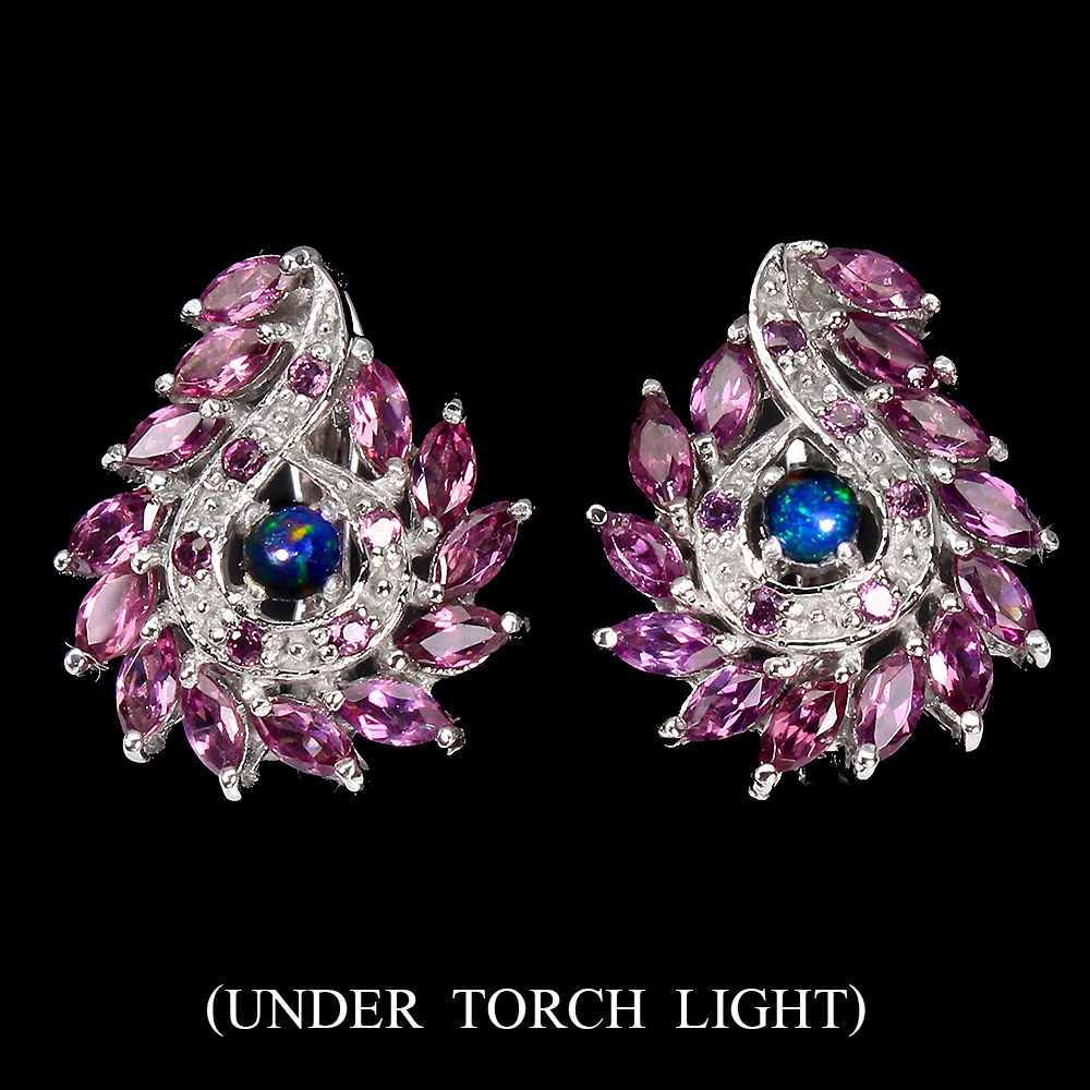 СЕРЬГИ С ЧЕРНЫМ ОПАЛОМ С ГРАНАТОМ