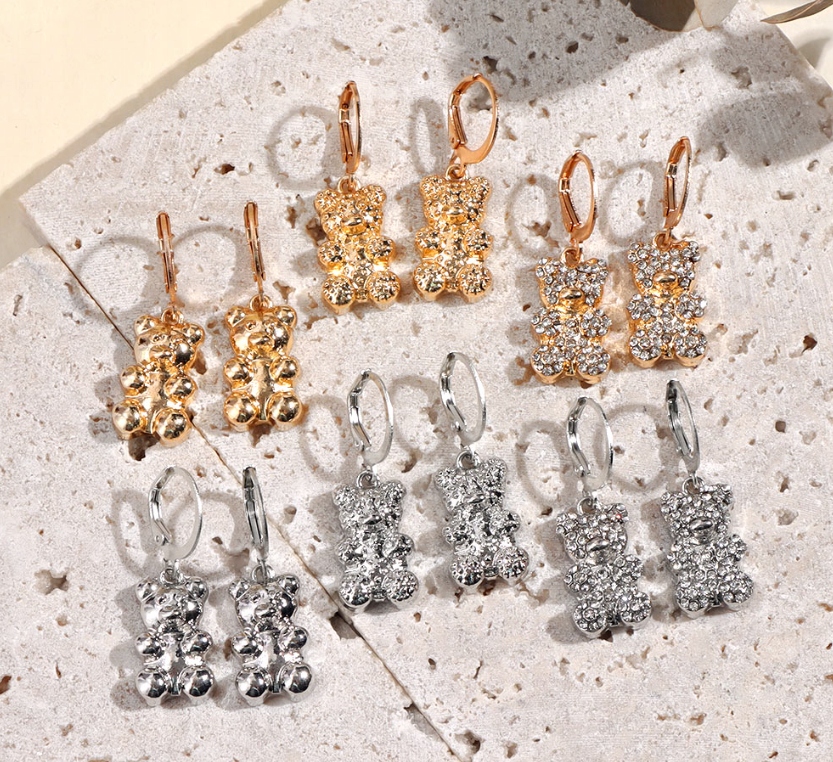 Серьги желе медведя плюшевый мишка Гумиси стразы Серебряные шарики