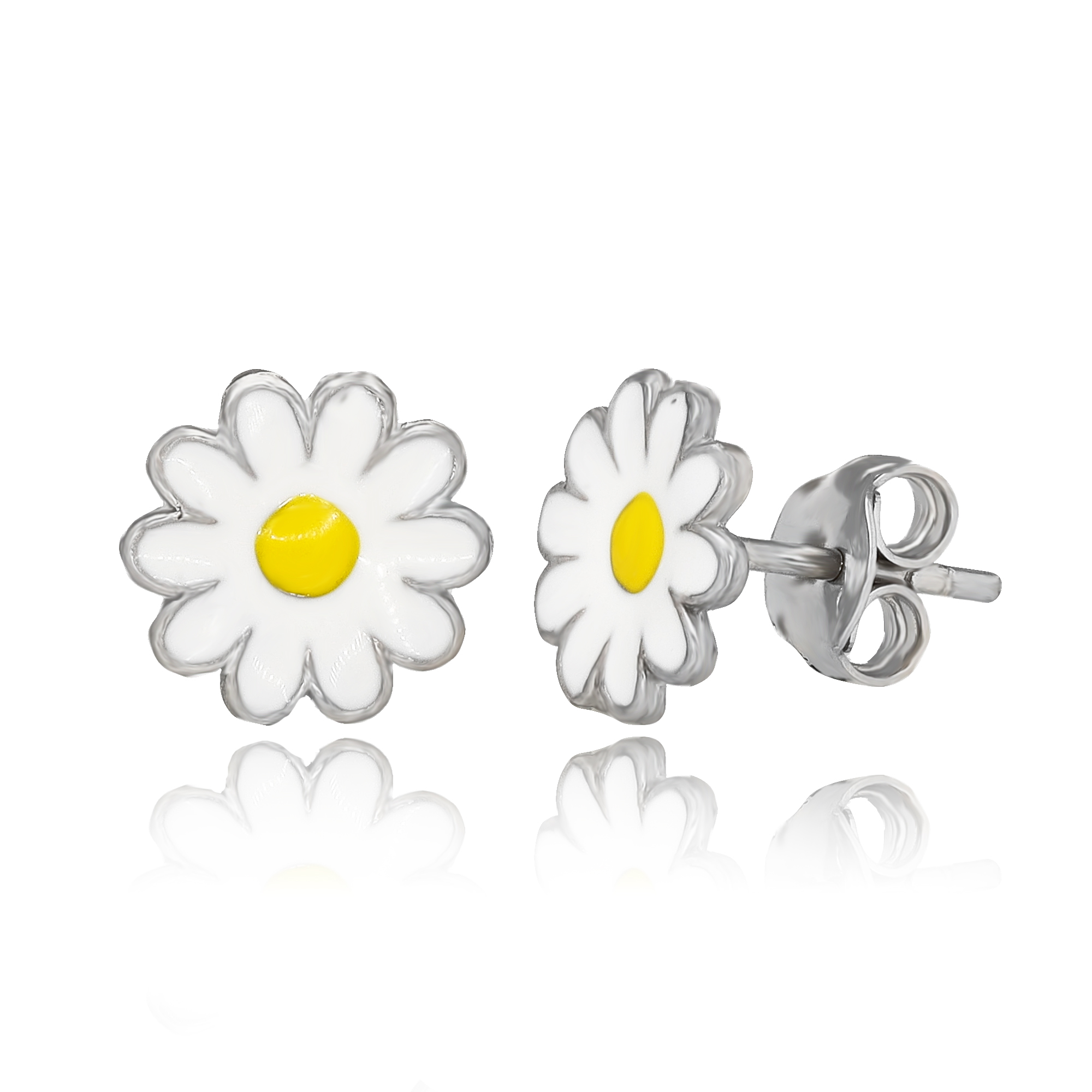 СЕРЕЖКИ З КВІТАМИ РОМАШОК З СРІБНОЇ ЕМАЛІ p925