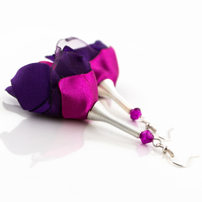 Сережки з шовкової тканини фіолетового кольору та кольору фуксії