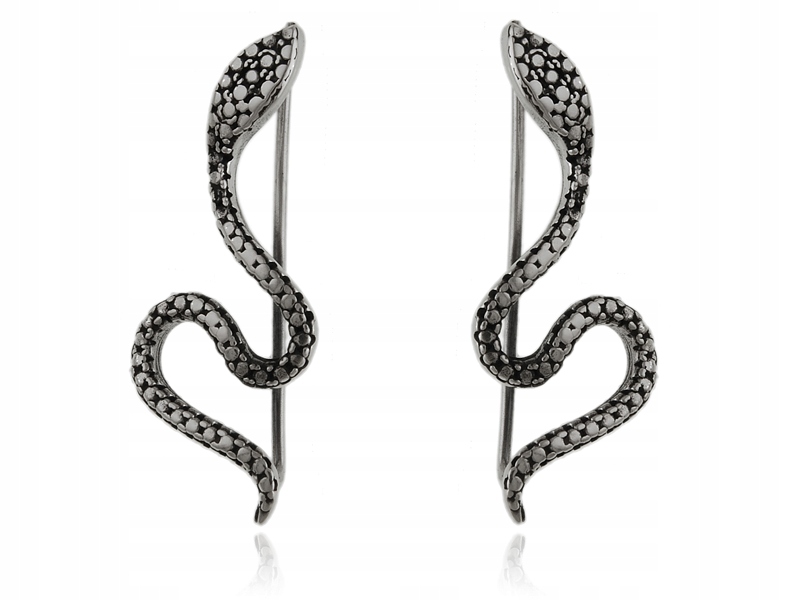 Серьги из серебра 925 пробы, серьги-змеи, изготовленные из специально затемненного серебра, так называемого оксидированное серебро, античный стиль.