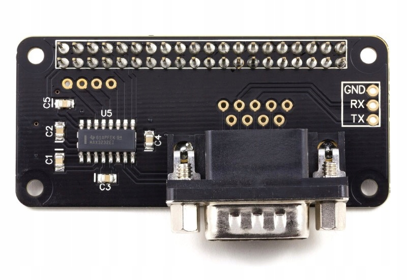 Накладка для Raspberry Pi в версии A+ / B+ / 2 / 3 / 3+ / Zero / Zero W с системой MAX3232, обеспечивающей связь через интерфейс RS232. Модуль имеет преобразователь, который осуществляет связь по UART и питается от разъемов Raspberry Pi. Также на плате имеется разъем DB9 и место для создания прототипов систем.