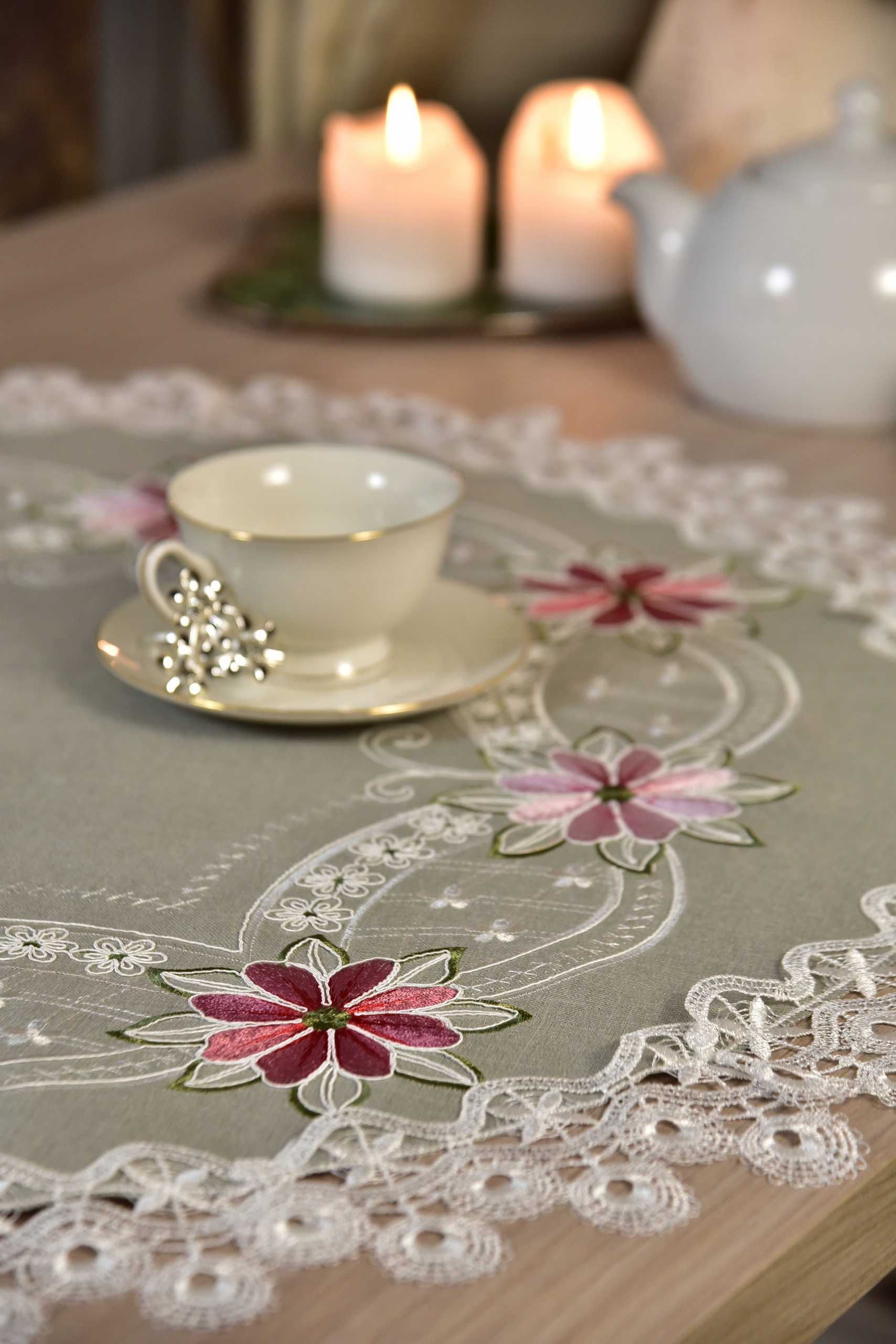 Круглый Сервир 85 см с вышитыми цветами и оболочкой гиптуры h2>