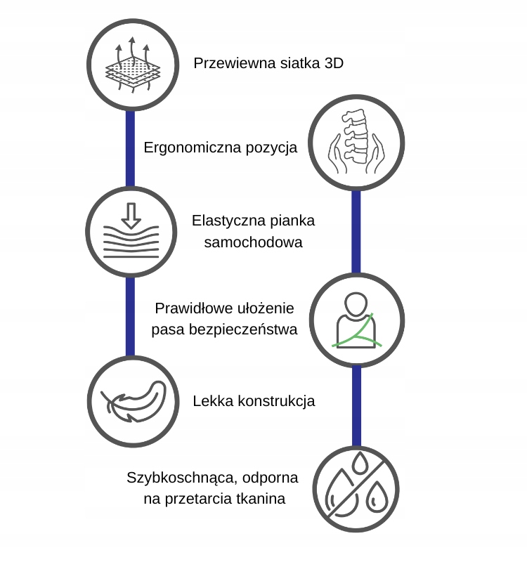 »благодаря используемой автомобильной пене, точечное давление опухолей седалищного образования в положении сидящего ребенка рассеивается на большую поверхность, которая уменьшает нагрузку, передаваемую к телу ребенка, тем самым увеличивая комфорт перемещения. Фена приспосабливается к телу ребенка, поэтому давление не зависит от кости, даже не наносит на дому, что наказывает, что на порогу не наносит на себя.