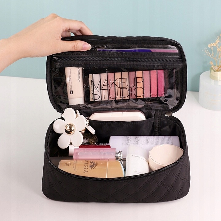 Идеальный размер косметички как для коротких, так и для дальних поездок. Органайзер для путешествий, в котором все необходимое будет храниться в оригинальной упаковке без необходимости переливания в дорожные флаконы меньшего размера.