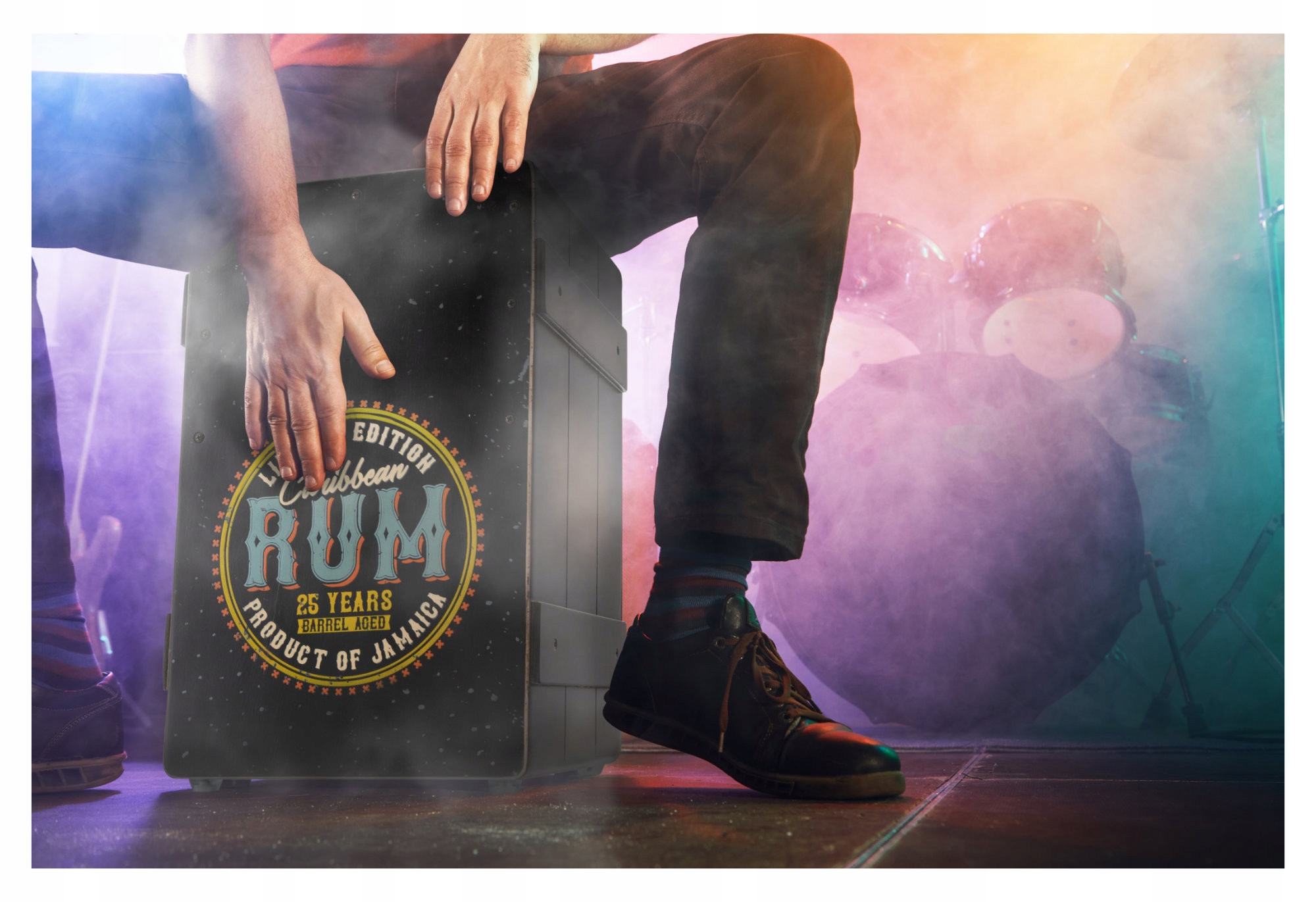 <ул>Дизайнерский кахон с принтом «Ром». Встроенный басовый порт, корпус из HPL, верхняя половина передней панели прикручена, стационарный малый барабан, напористый бас.