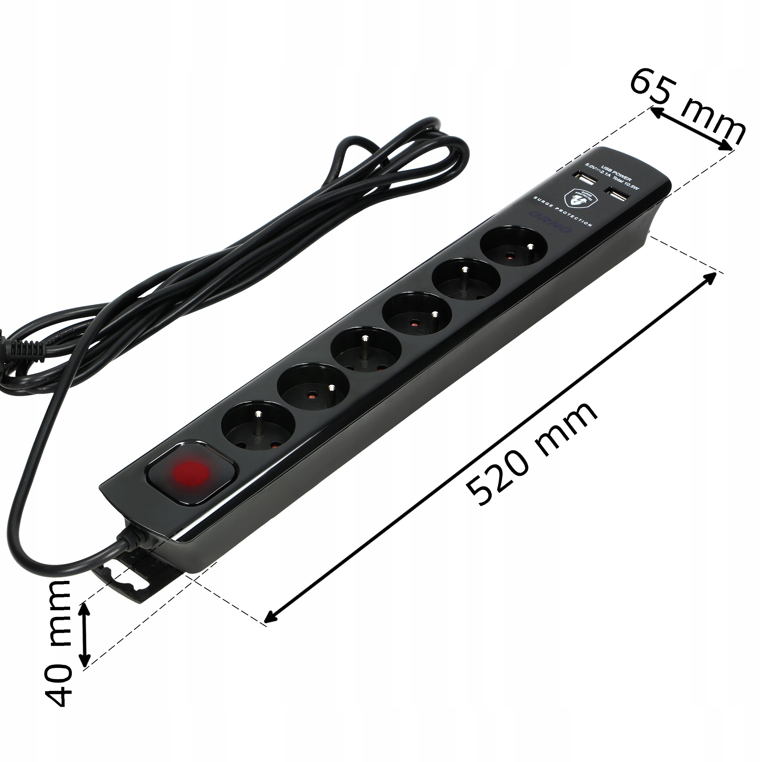 УСТРОЙСТВО ДЛЯ ЗАЩИТЫ ПИТАНИЯ, 8 РОЗЕТОК + 2 USB, КАБЕЛЬ ДЛИНОЙ 3 МЕТРА