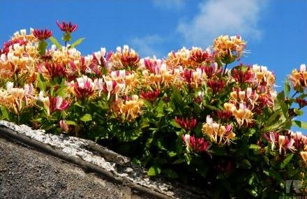 Рост около 1 м. Листья темно-зеленые, эллиптической формы.Цветки трубчатые, снаружи розово-фиолетовые, внутри кремово-белые, сильно и приятно пахнут. Цветет с мая по июль, часто повторяя цветение в августе и сентябре. Лиана также украшена темно-красными шаровидными ягодами. Хорошо растет на всех садовых почвах, в солнечных или полутенистых местах.