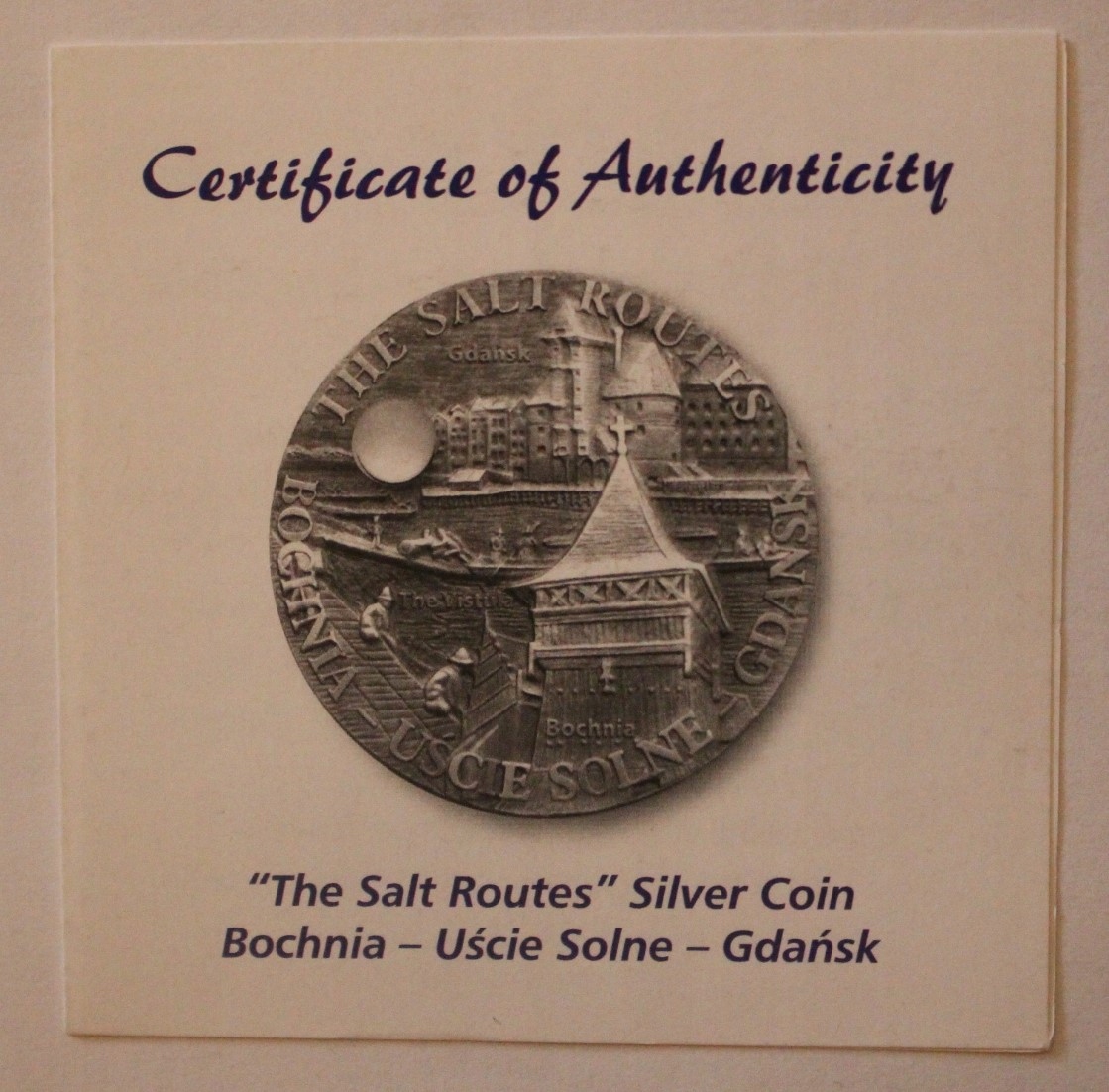 ПРЕДЛАГАЮ ВАС КУПИТЬ СЕРТИФИКАТ НА МОНЕТУ - СОЛЯНАЯ ТРОПА - БОЧНЯ - ГДАНЬСК 2009 - OXYDA. СЕРТИФИКАТ ИЗ МОЕЙ ЧАСТНОЙ КОЛЛЕКЦИИ. СОСТОЯНИЕ НА ФОТО.