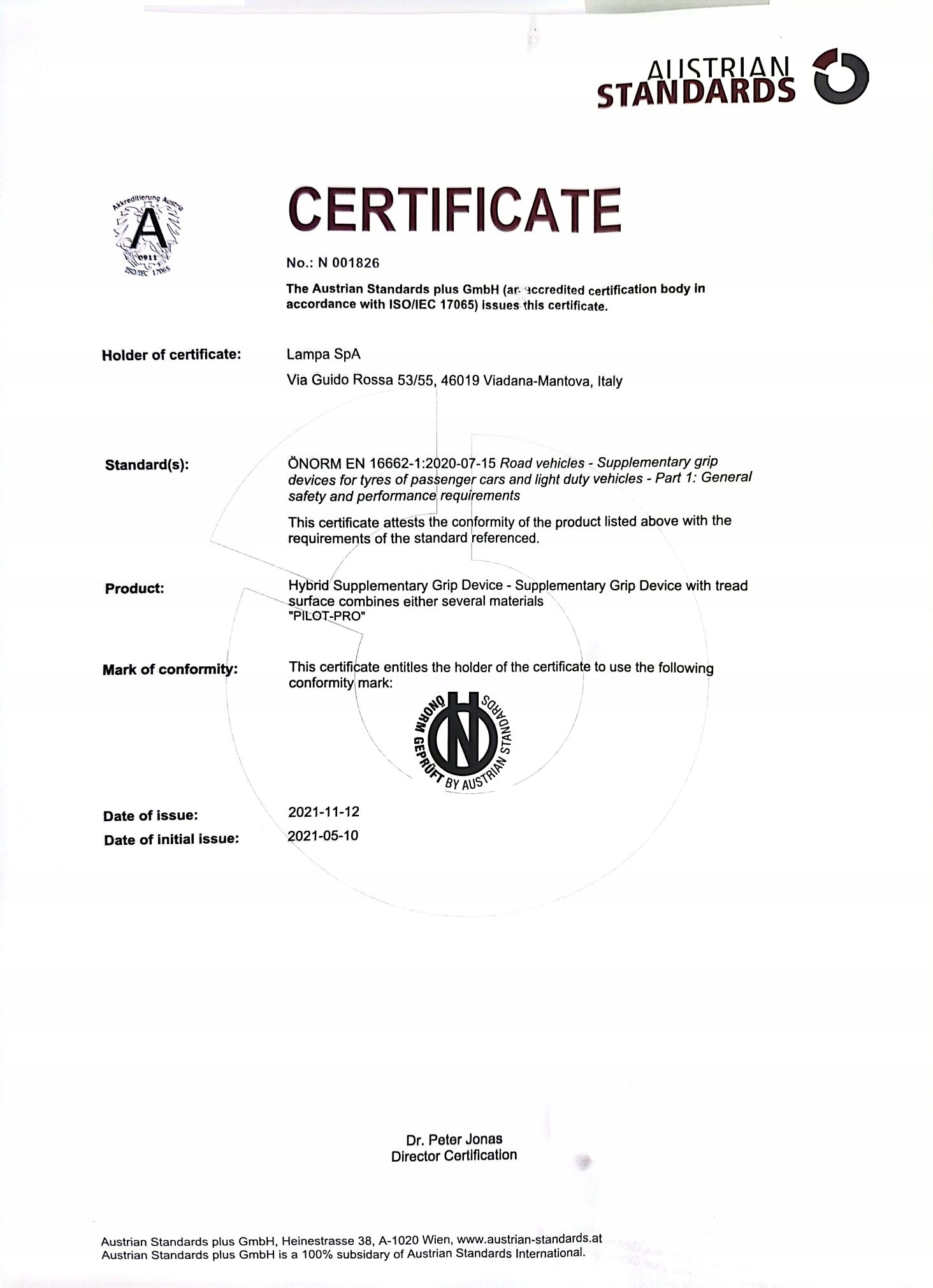 Сертификат о ЕС и Австрии прикрепляется к каждому набору цепей.
