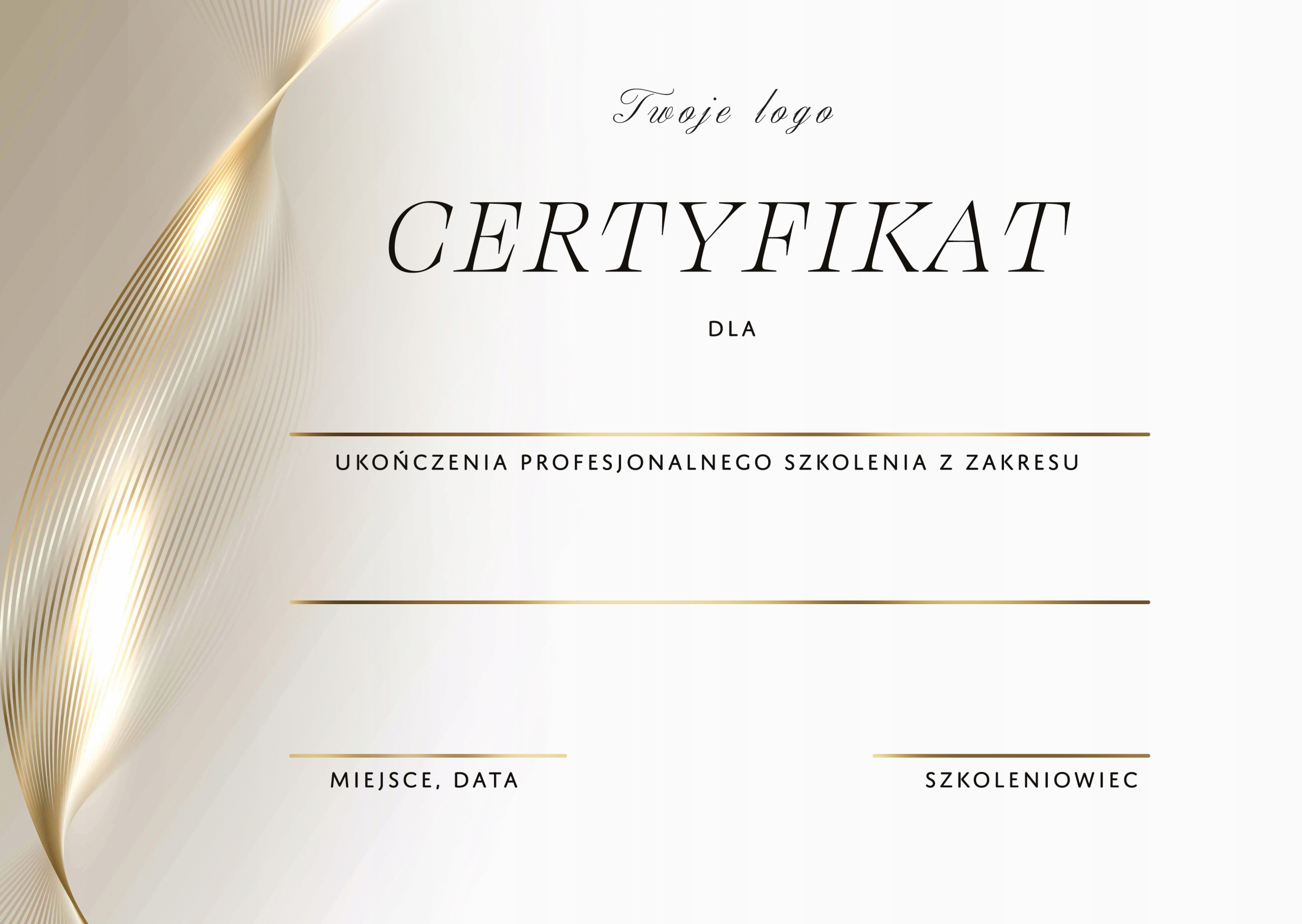 CERTYFIKAT SZKOLEŃ złote linie salon BEAUTY A4 A3