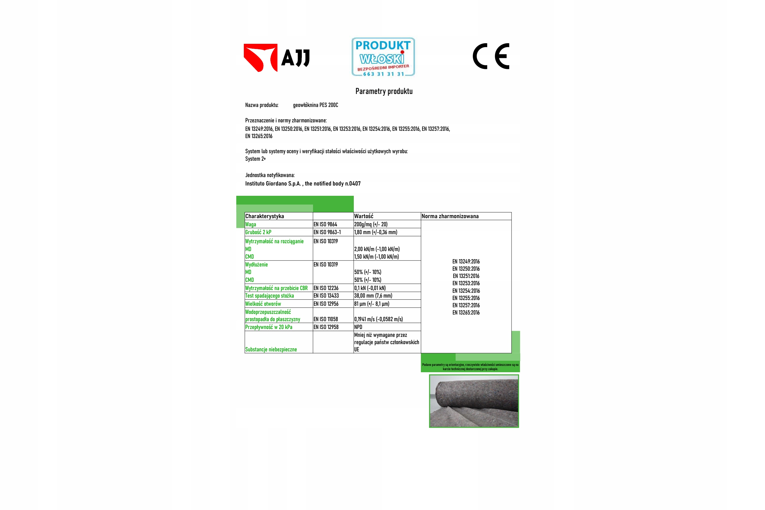 Геотекстиль производства в Италии импортируется напрямую компанией AJJ. AJJ — известная на рынке компания, которой управляют инженеры-строители, специализирующиеся на геосинтетике.