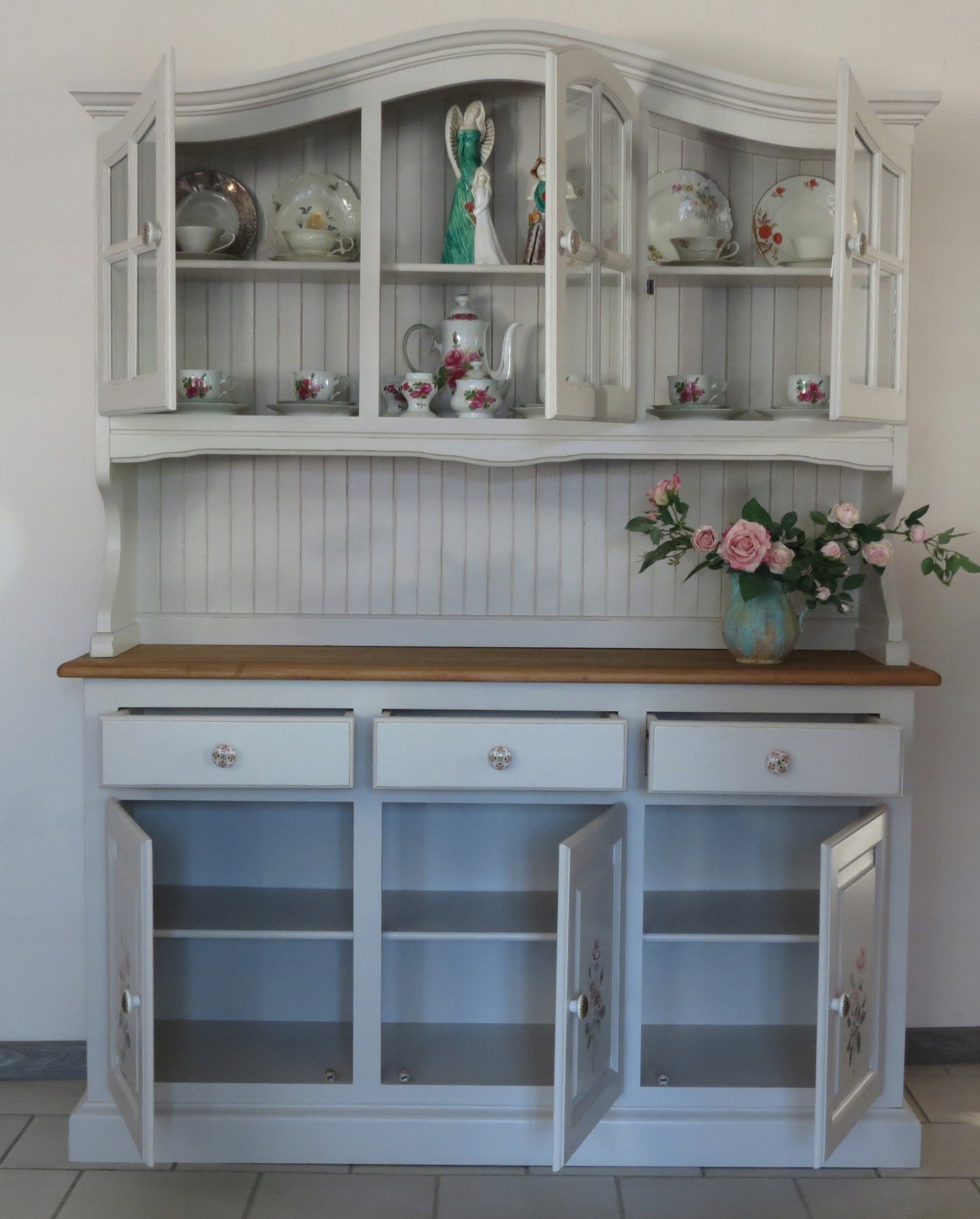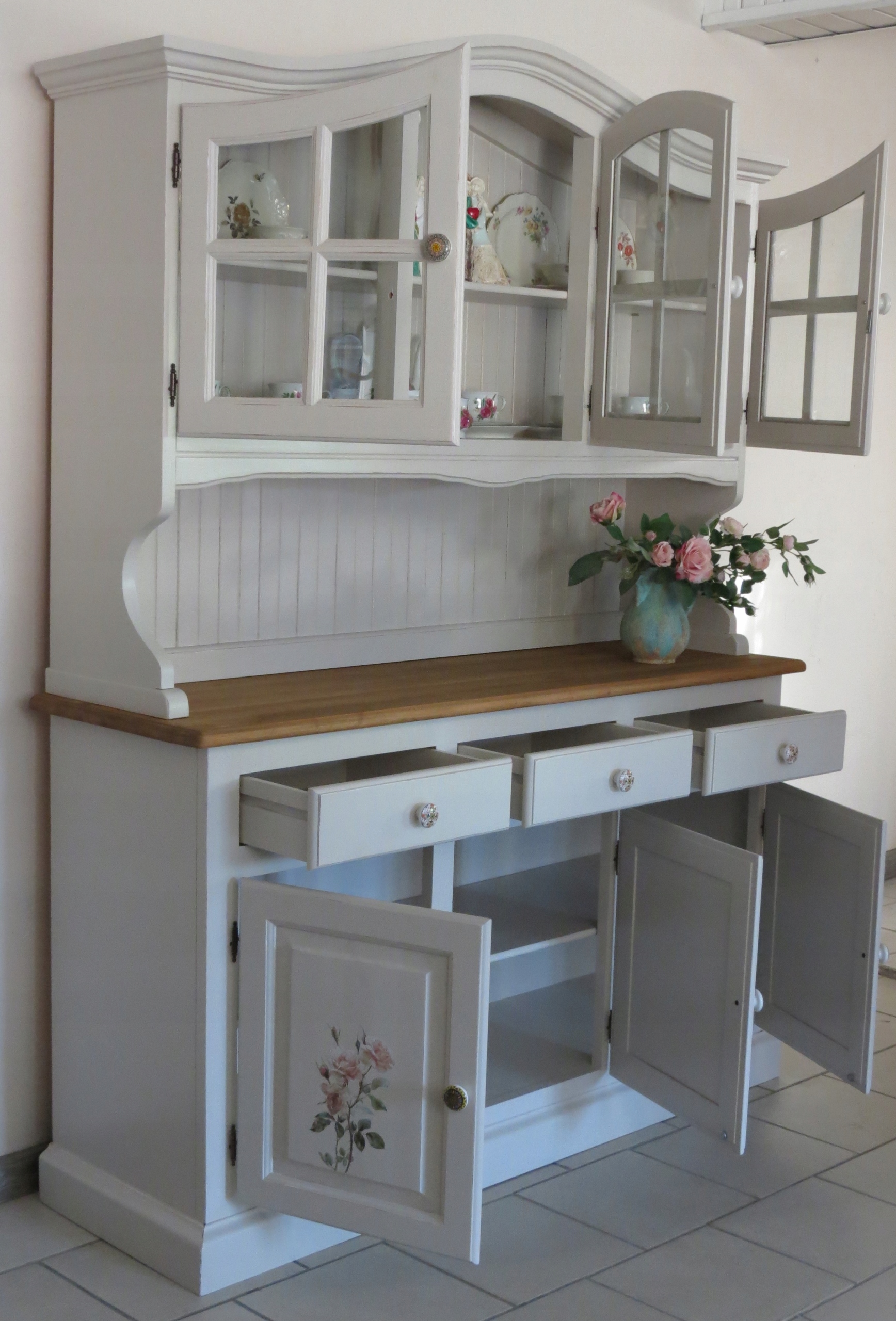 Серван украшен красивыми розами. на нижних дверцах, что придает элегантность и провансальский шарм.