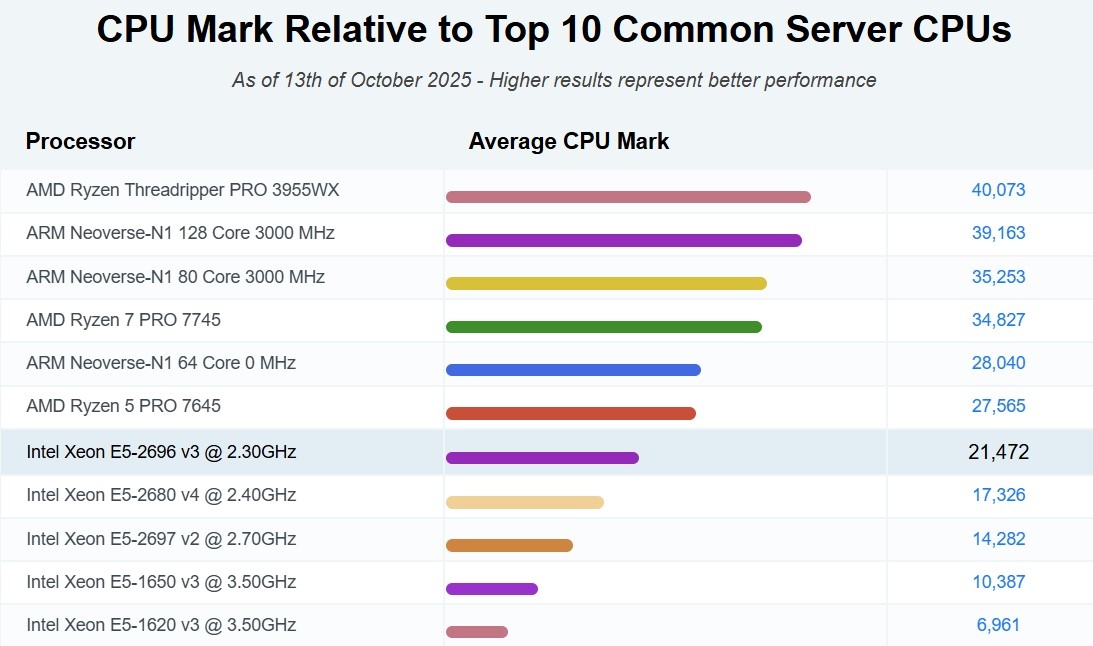 - Процессоры: 2 × Intel Xeon E5-2696 v3 (2,30 ГГц, кэш 45 МБ, 145 Вт, SR1XK)