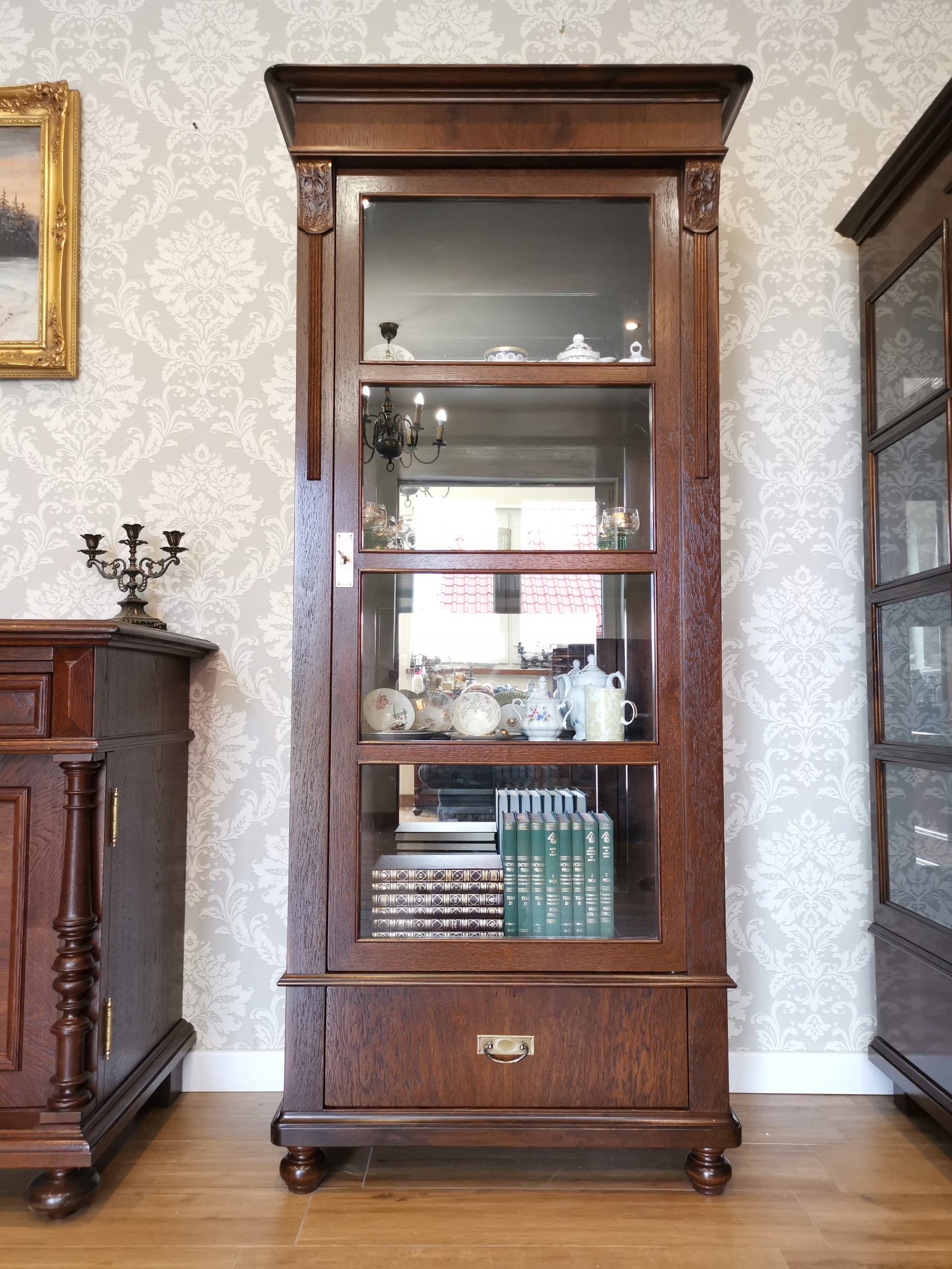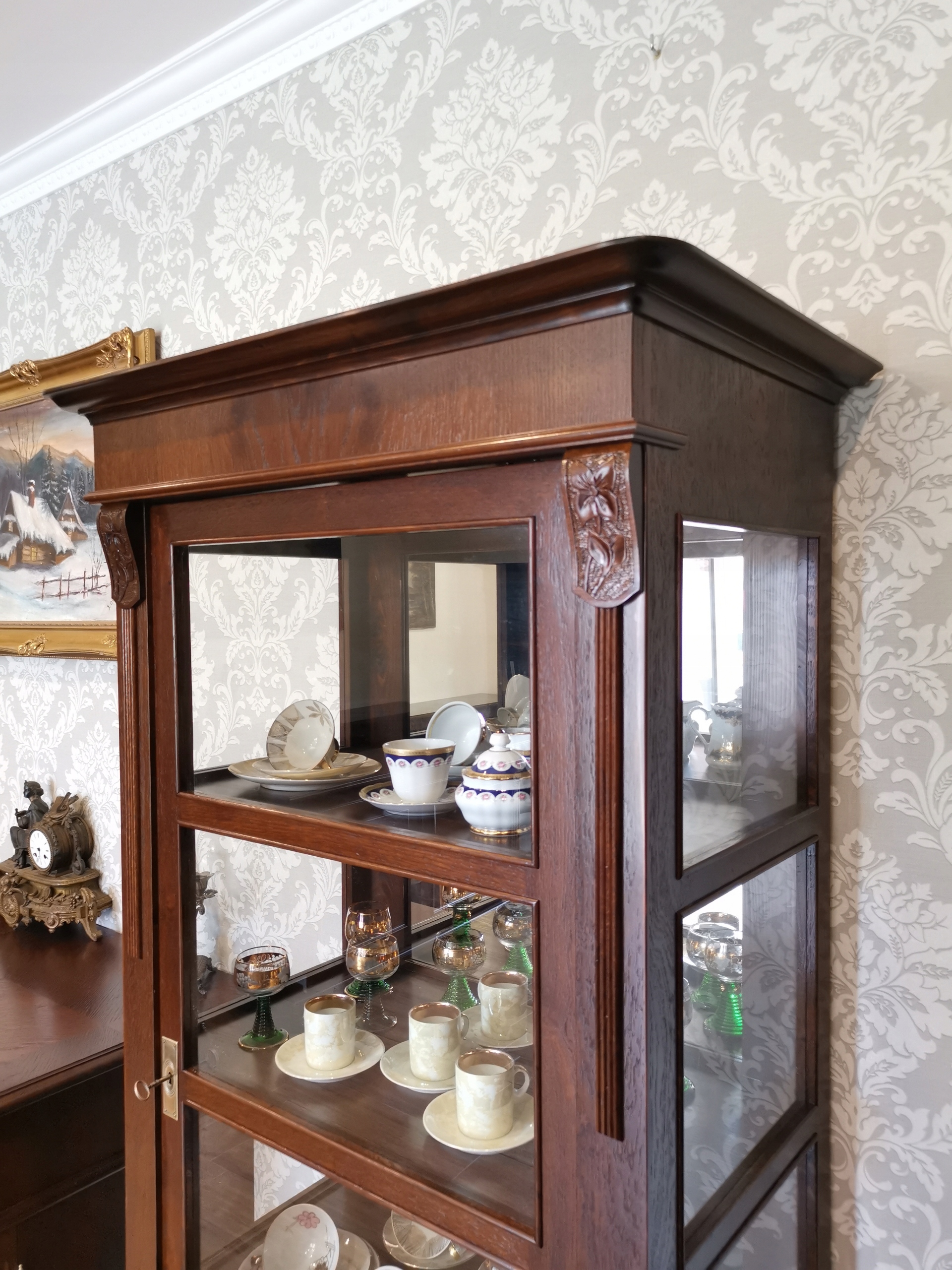 Зеркала, расположенные на задней стенке, делают интерьер мебели ярким и красиво демонстрируют фарфоровые чудеса.