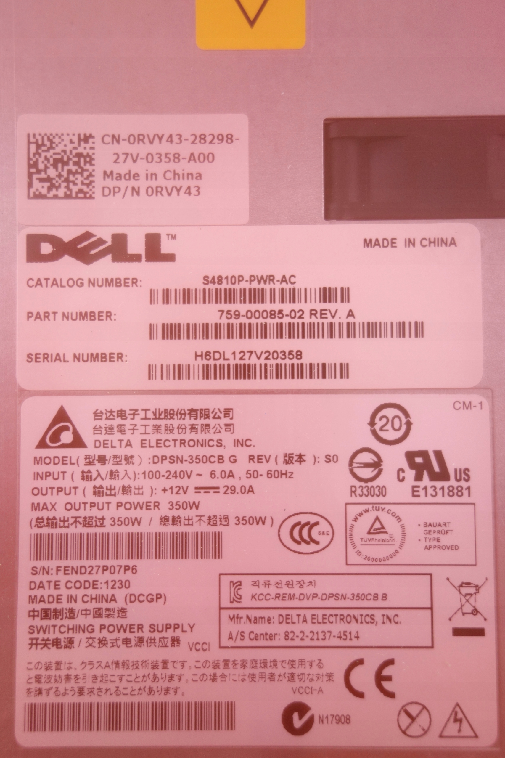 Серверний блок живлення 350 Вт Dell S4810 - DPSN-350CB G