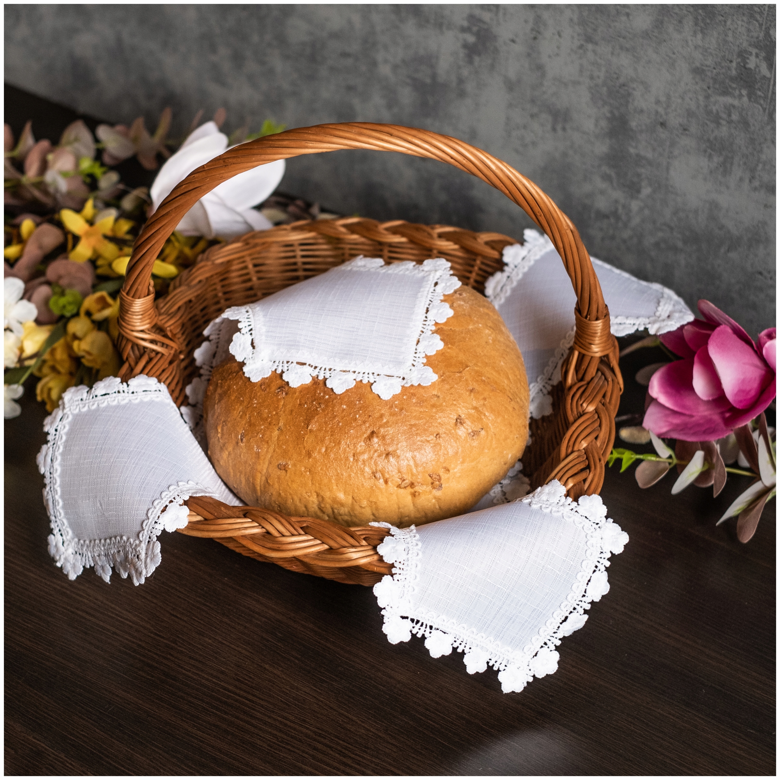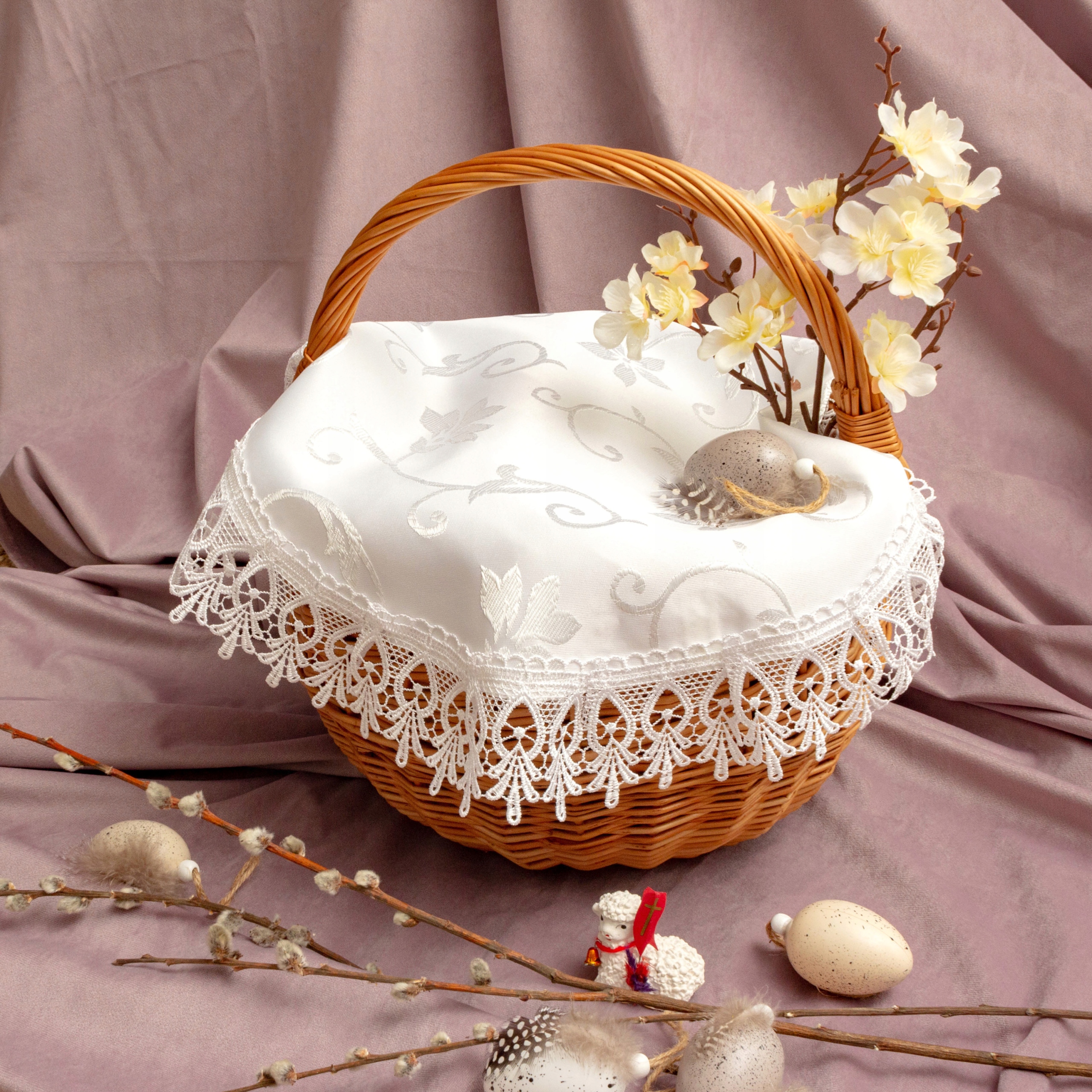 ✅Салфетка белая для пасхальной корзинки/Пасхальной корзинки, 30 см, изготовлена из нежного белоснежного полиэстера, отделана гипюровым кружевом.