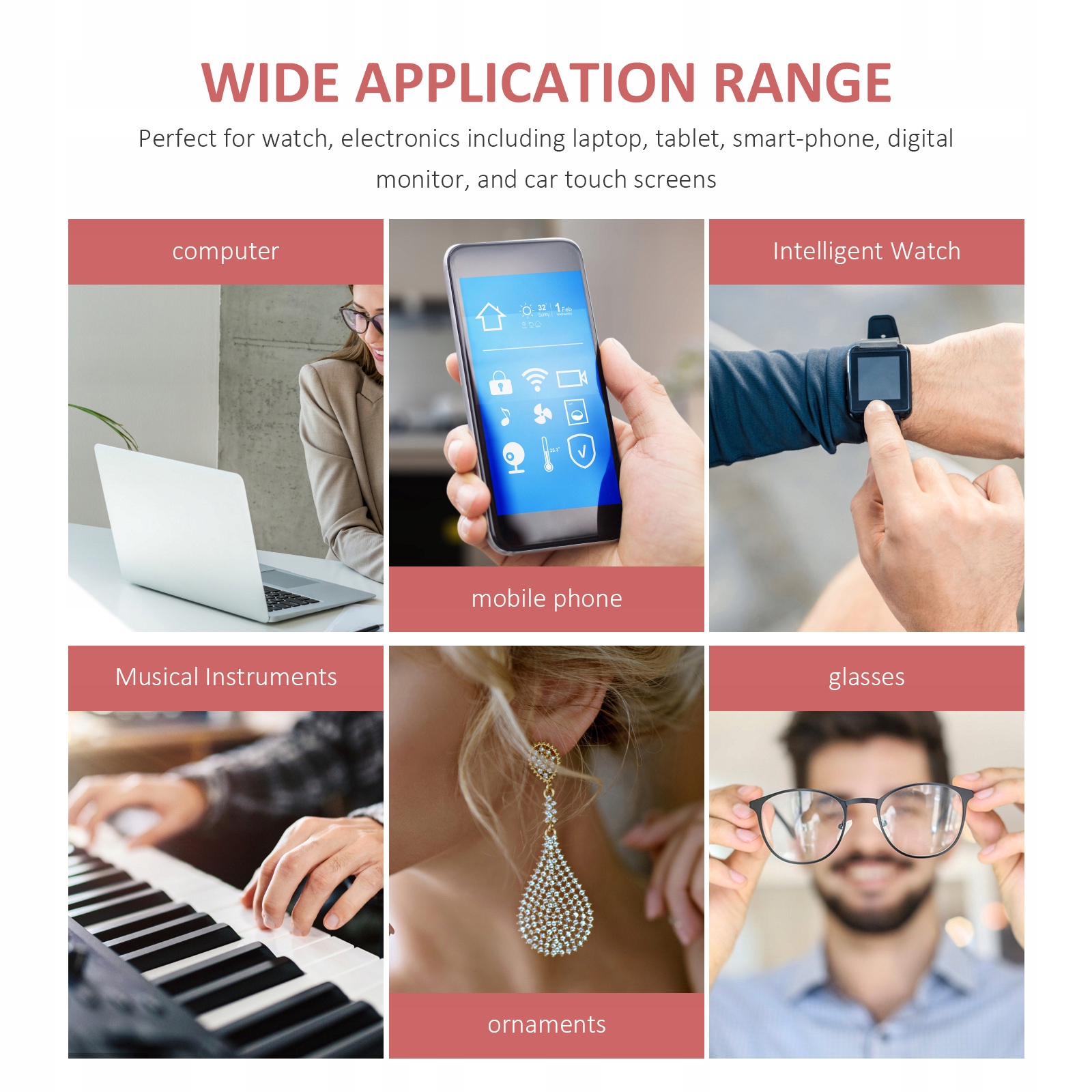Идеально подходит для часов, электроники, включая ноутбуки, планшеты, смартфоны, цифровые мониторы и автомобильные сенсорные экраны.