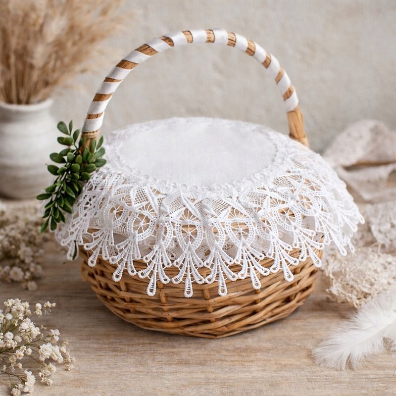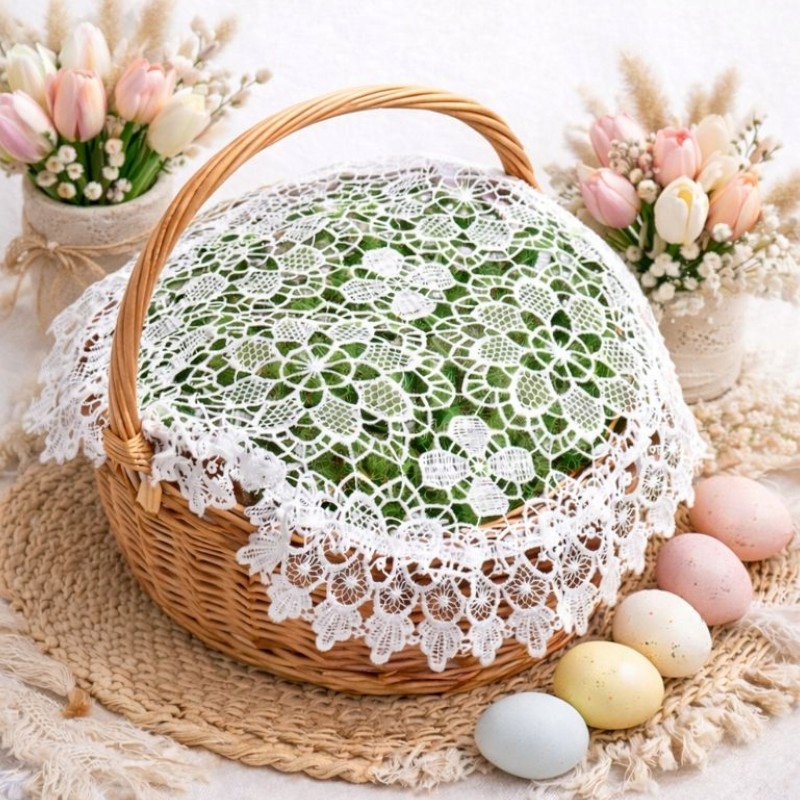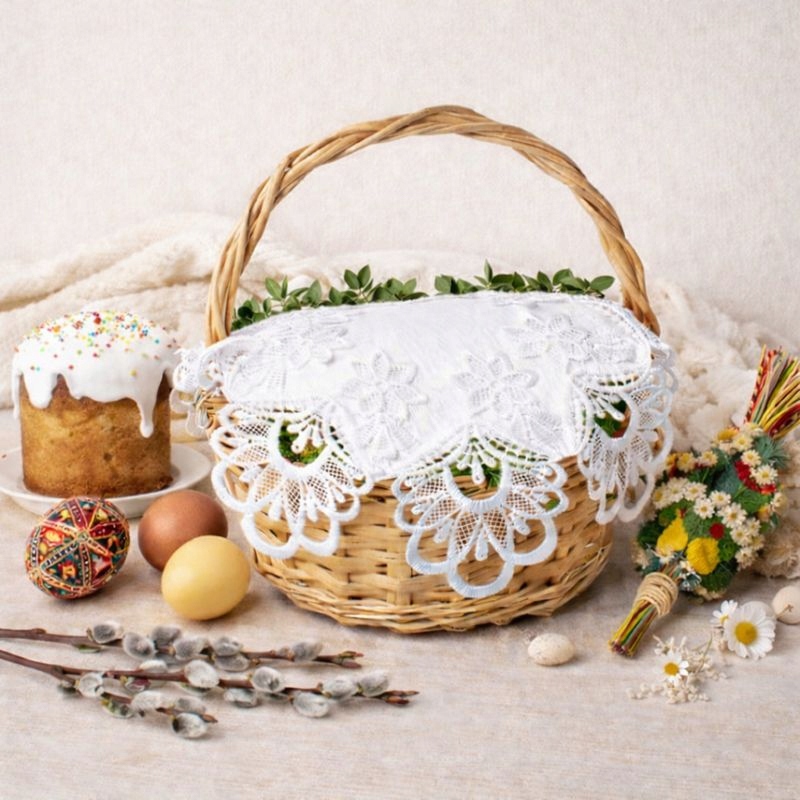 САЛФЕТКА для большой ПАСХАЛЬНАЯ КОРЗИНКА для праздника Пасхи 54х54 с гипюром