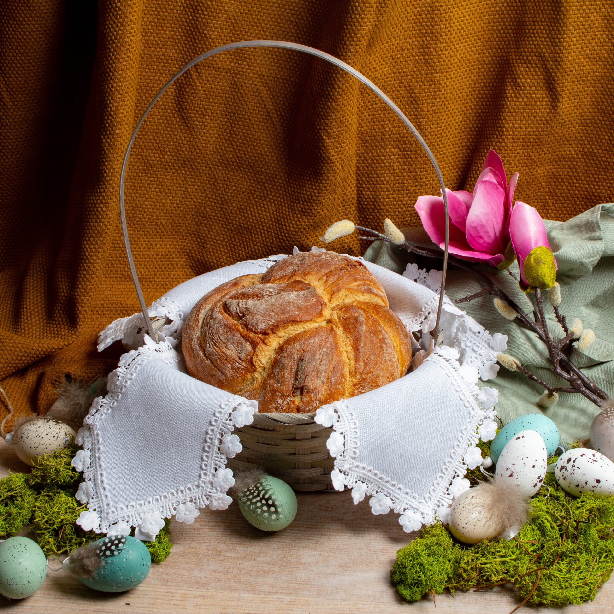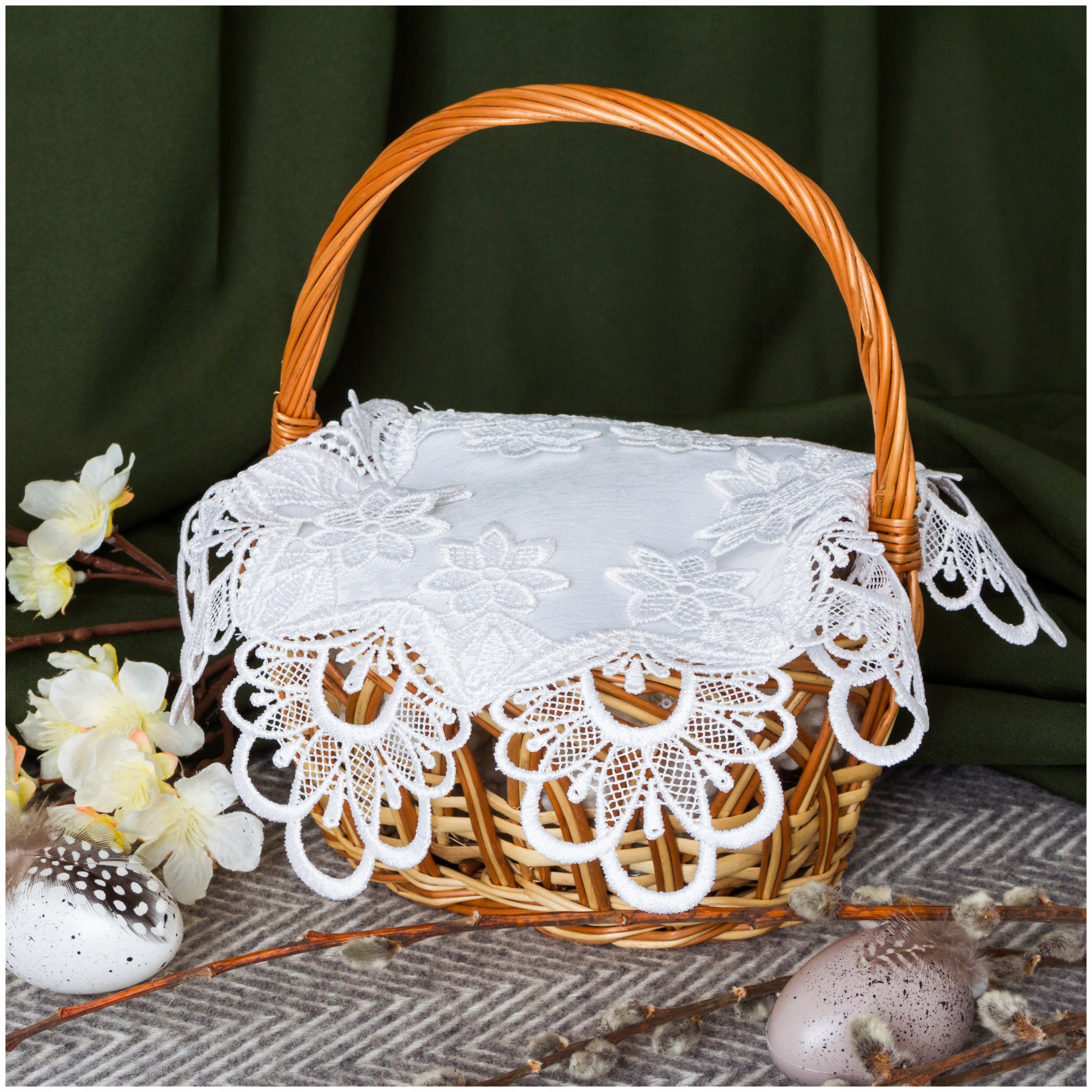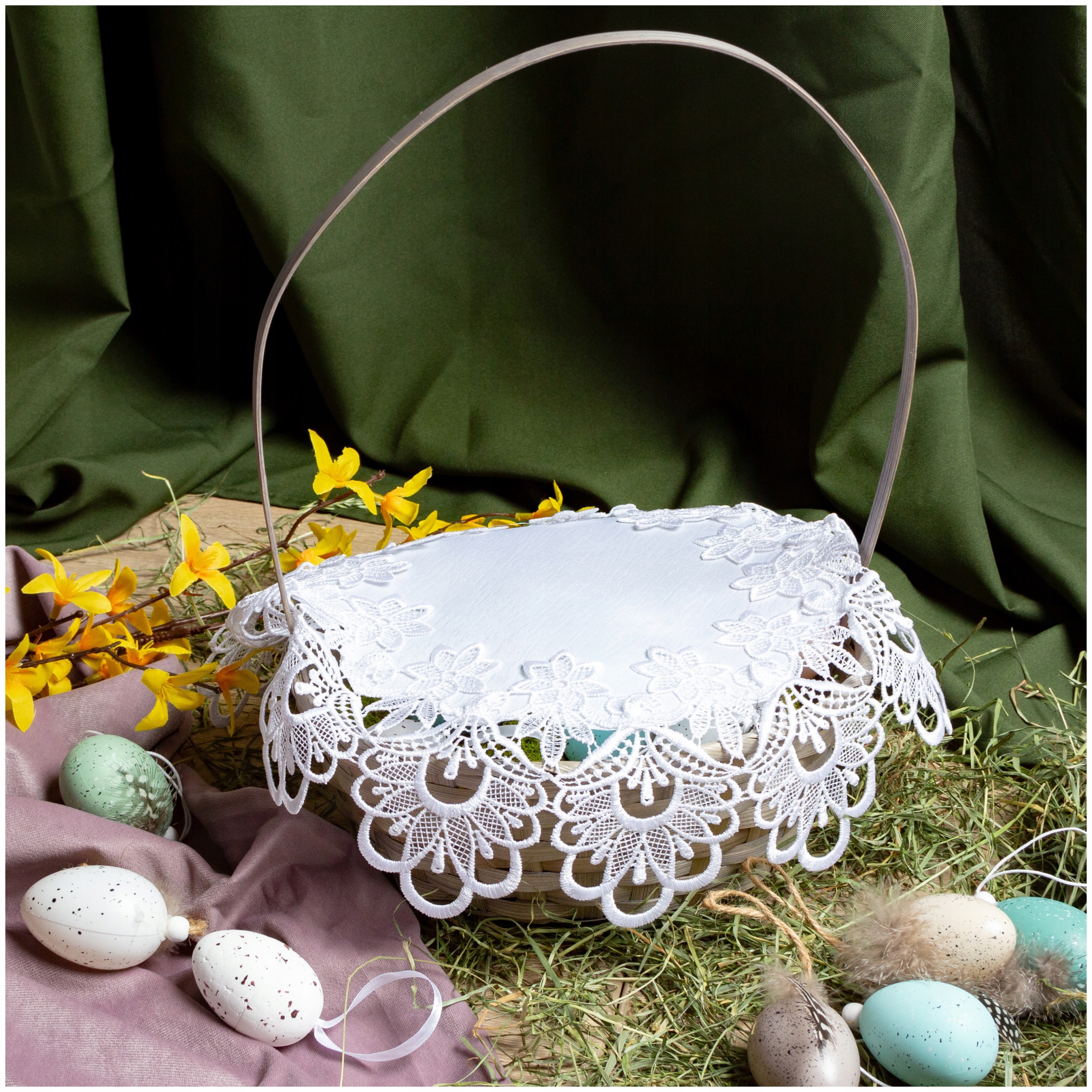 Салфетка «ПАСХАЛЬНАЯ КОРЗИНКА», Święconki, крючком, БЕЛЫЙ хлопок, 30 см