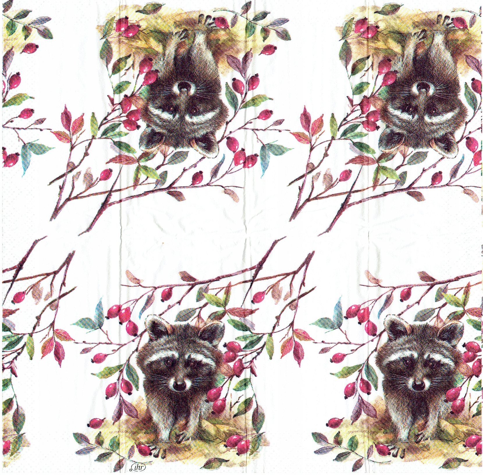 Салфетка тканевая для декупажа Енот плоды боярышника 1 шт.