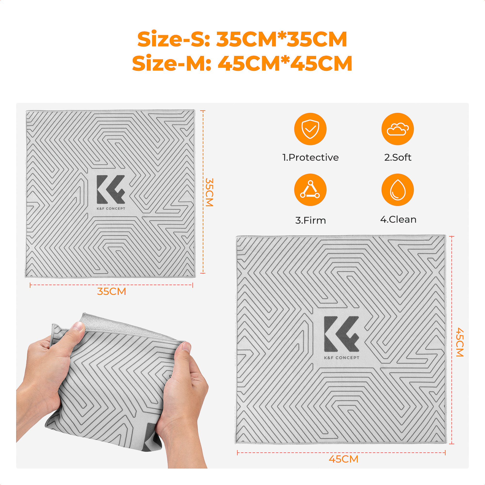 Чтобы наилучшим образом удовлетворить разнообразные потребности фотографического и электронного оборудования, ткань K&F Concept Magic Cloth доступна в различных размерах. Идеально подходит для чистки зеркальных фотоаппаратов, комплектов объективов, смартфонов и планшетов. В зависимости от ваших конкретных требований к оборудованию вы можете выбрать вариант 35 x 35 см или 45 x 45 см.