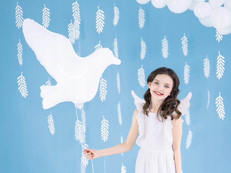 - 2 белых шарика в форме голубей, которые будут плавать, когда надутый гелием. Размер 26 дюймов — 77 х 66 см.