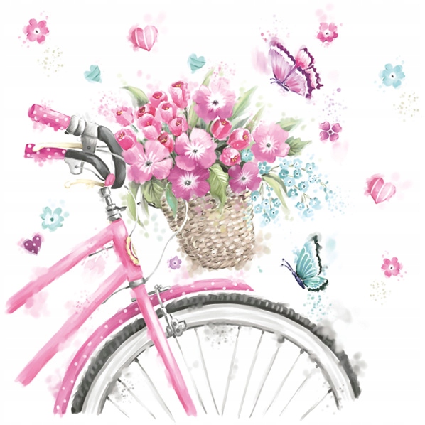 ДЕКОРАТИВНЫЕ САЛФЕТКИ ОТ POL-MAK СЕРИЯ РОМАШКА УЗОР SDOG 023301 НАЗВАНИЕ: РОЗОВЫЙ ВЕЛОСИПЕД С КОРЗИНОЙ