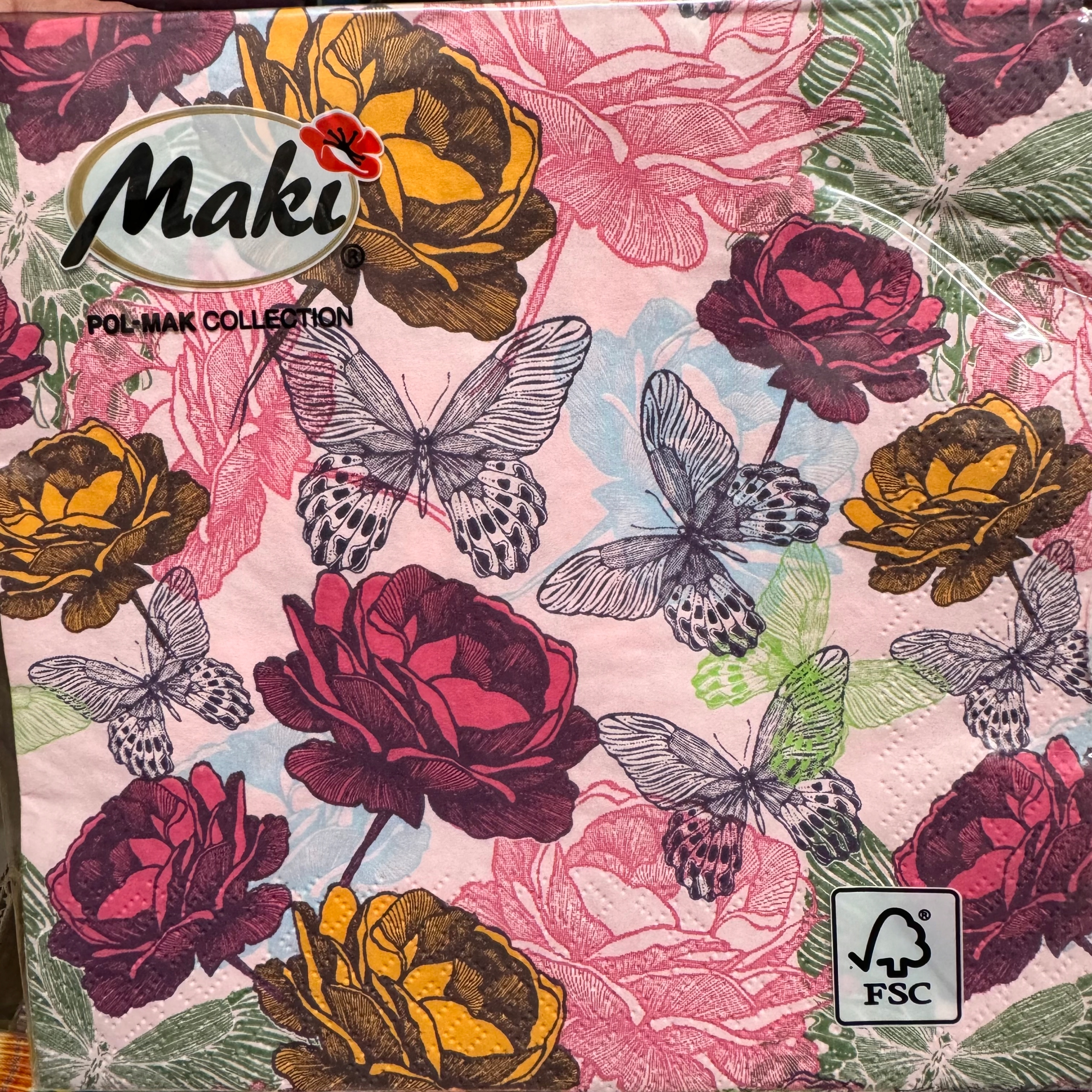 Серветки Maki 1 комплект - 20 шт квіти метелики троянди