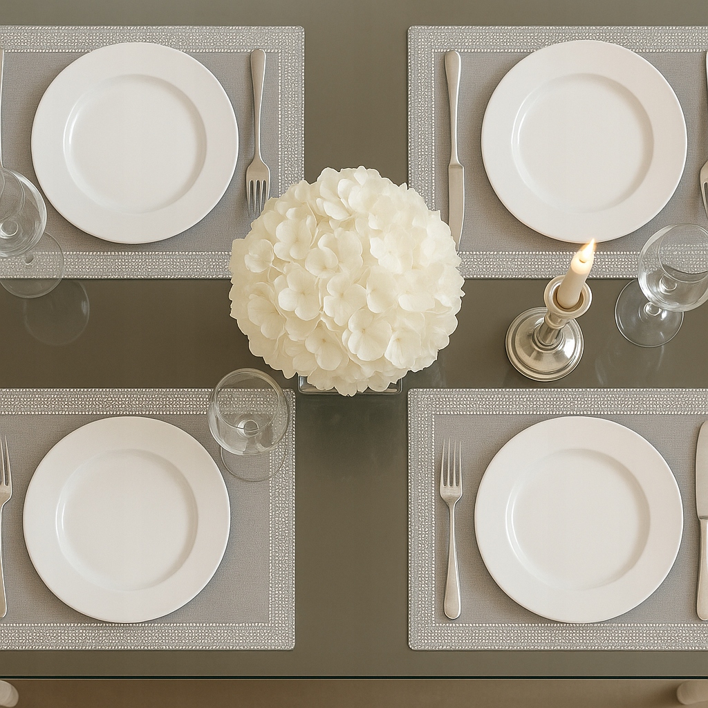 Эти салфетки отлично подходят и для повседневного использования - в качестве эстетичных подставок для тарелок, подсвечников, чайных чашек или стаканов. Их нейтральные цвета в сочетании с блестящей лентой из циркона делают их подходящими как для современных, минималистичных интерьеров, так и для более классических интерьеров.