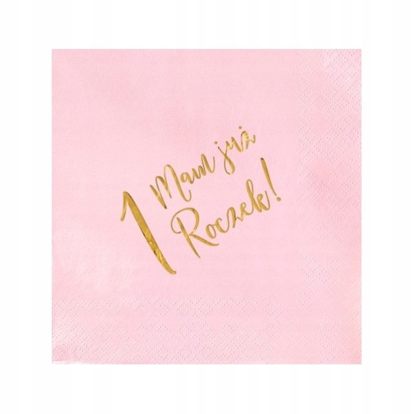 - светло-розовые бумажные салфетки, украшенные золотой мерцающей надписью «Мне уже год» и большой цифрой 1. <ли> салфетки 3-х слойные