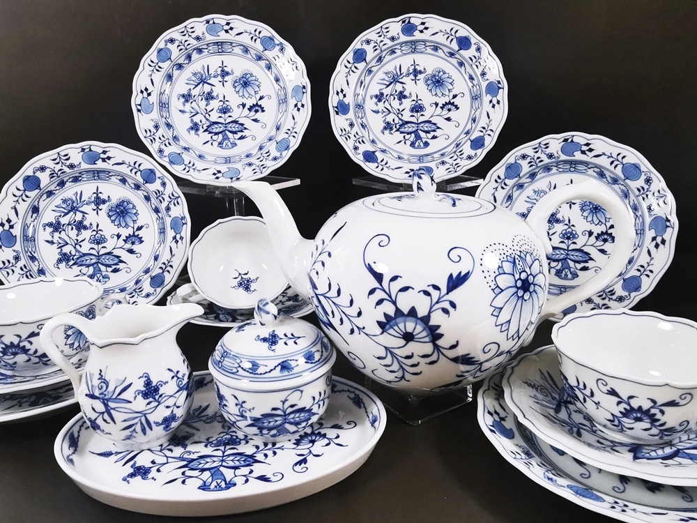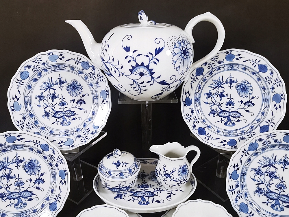 Стильный фарфор ручной работы, украшенный красивым мейсенским мотивом, так называемый луковый узор.