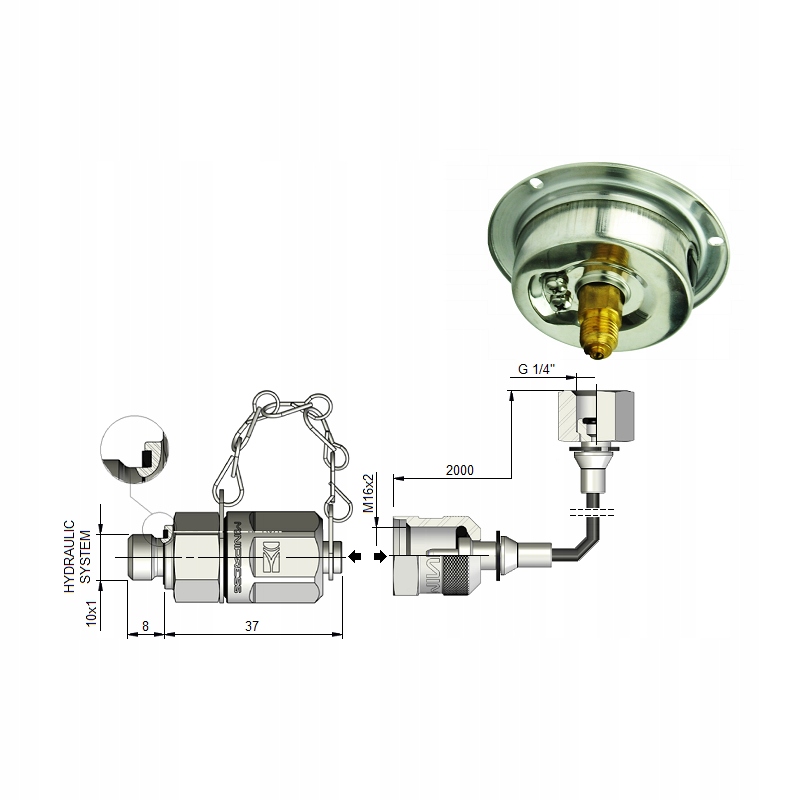 Набор для измерения давления масла в закрытых гидравлических системах, в которых существуют условия для развития гидравлического давления. Датчик давления с воротником, адаптированным для установки на настольном компьютере или в открытии сервисного ящика. У связи есть капюшон с цепью, которая обеспечивает защиту от погодных условий. Запечатывает соединение, пока кабель с набором измерения отключен. Это решение позволяет вам навсегда оставить соединение, даже когда машина работает под давлением, а набор измерений отключен.