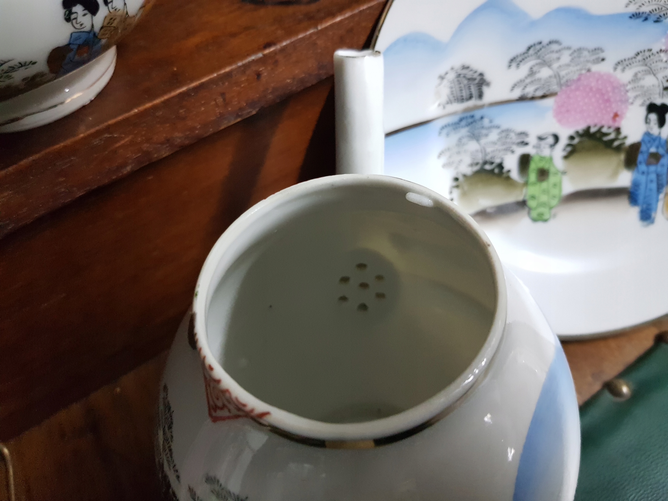Предмет большого аукциона - сервиз на 6 персон.В состав сервиза входят кувшин, сахарница, молочник, пиала, 6 чашек, 6 блюдец, 6 десертных тарелок, 2 тарелки для печенья. Сервиз расписан вручную.Внутренности чашек выполнены из полностью покрытых сюжетами.