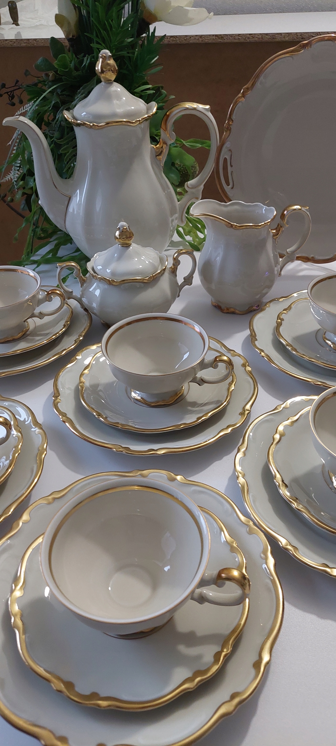 Сервиз цвета экрю, богато позолоченный, состоит из: