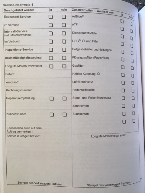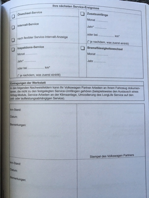 Сервисная книжка Volkswagen VW, Serviceplan немецкий, Германия