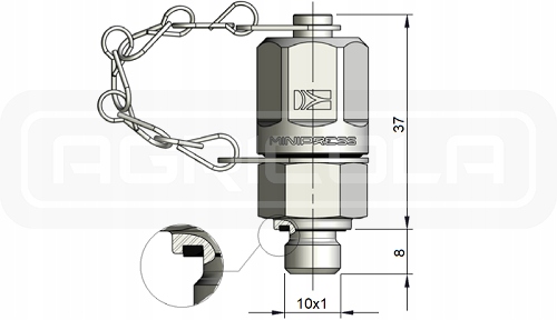 Резьбовой колпачок с цепочкой обеспечивает защиту от атмосферных воздействий и герметизирует соединение при отсоединении измерительного комплекта. Это решение позволяет постоянно оставлять соединение, даже если машина находится под давлением и измерительный комплект отключен.