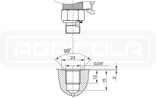 - Соединительная резьба на боковом корпусе устройства: внешняя резьба G3/8" с уплотнением ED