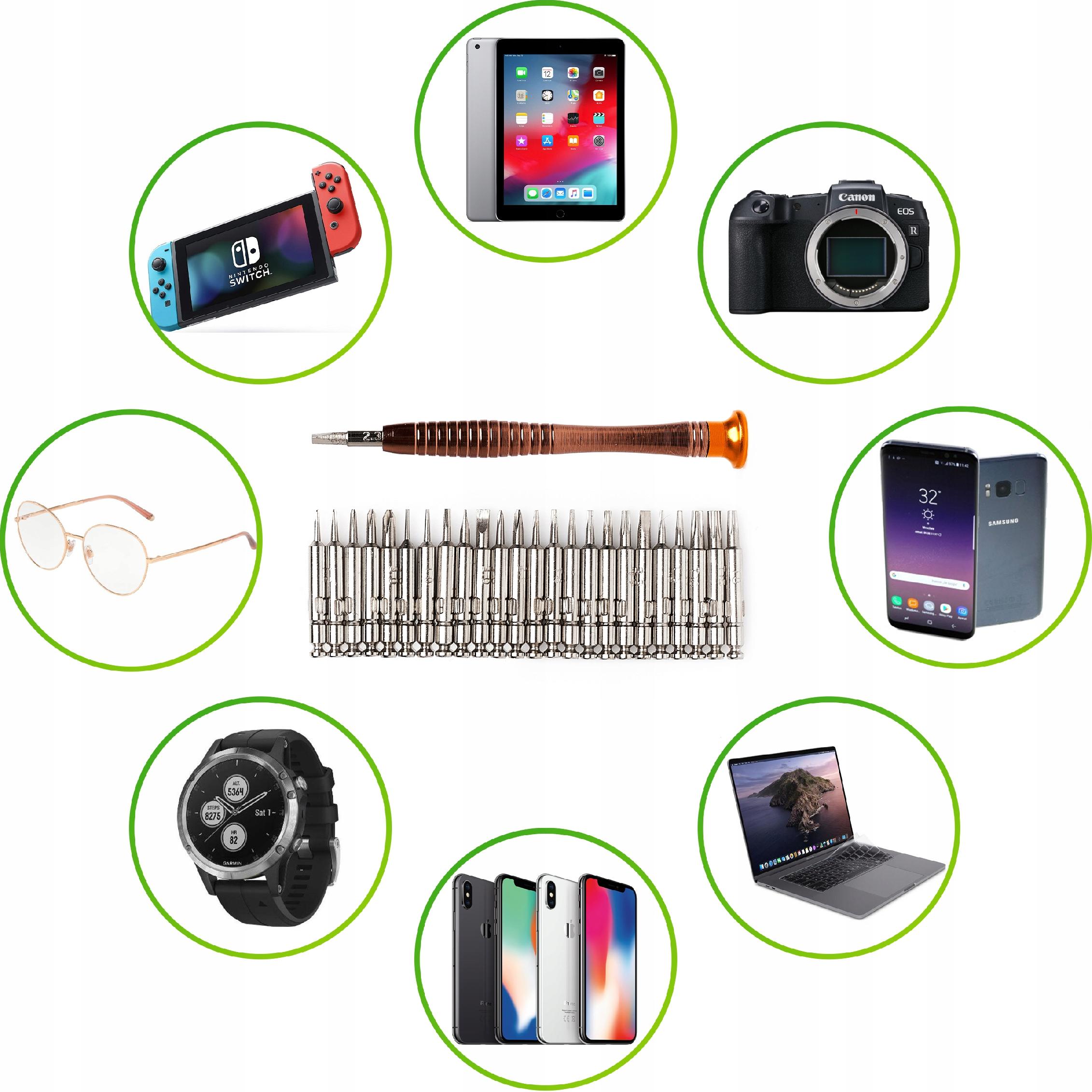 Набор инструментов для обслуживания телефонов, смартфонов, планшетов, навигации и другого электронного оборудования. Отвертки изготовлены из прочного и долговечного материала. Весь набор является практичным и простым в ношении и хранилище благодаря компактному дизайну и функциональному портфелю.