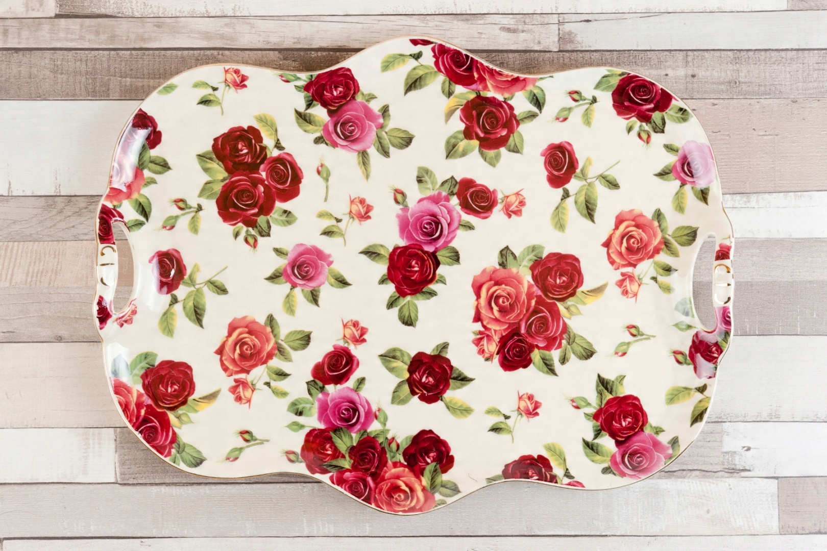 Сервіз чайний 16 шт. тарілка, подарунковий піднос, троянди