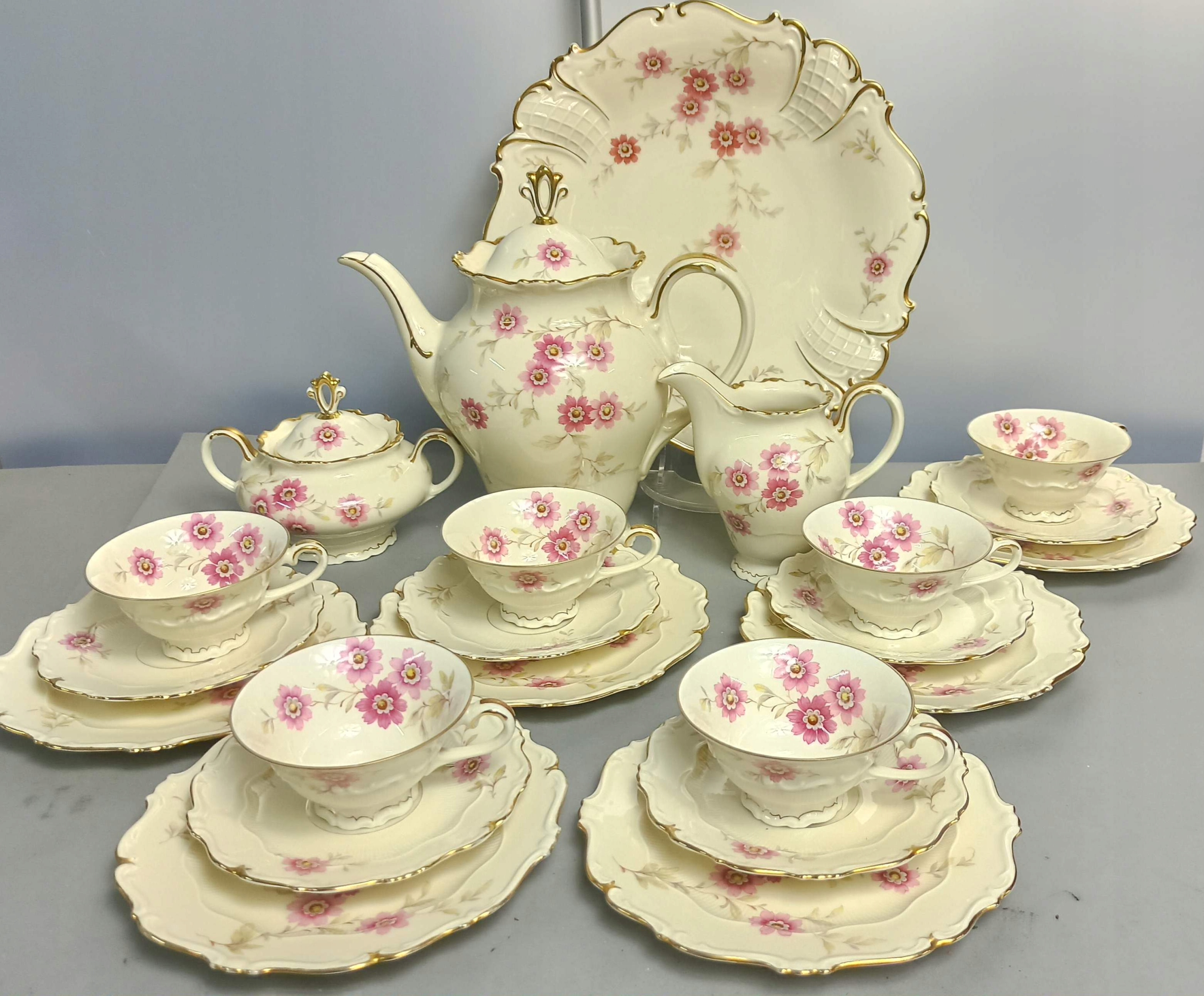 Красивый кофейный сервиз марки Carstens Porzellanfabrik SORAU (сегодняшний «Жары») на 6 персон.