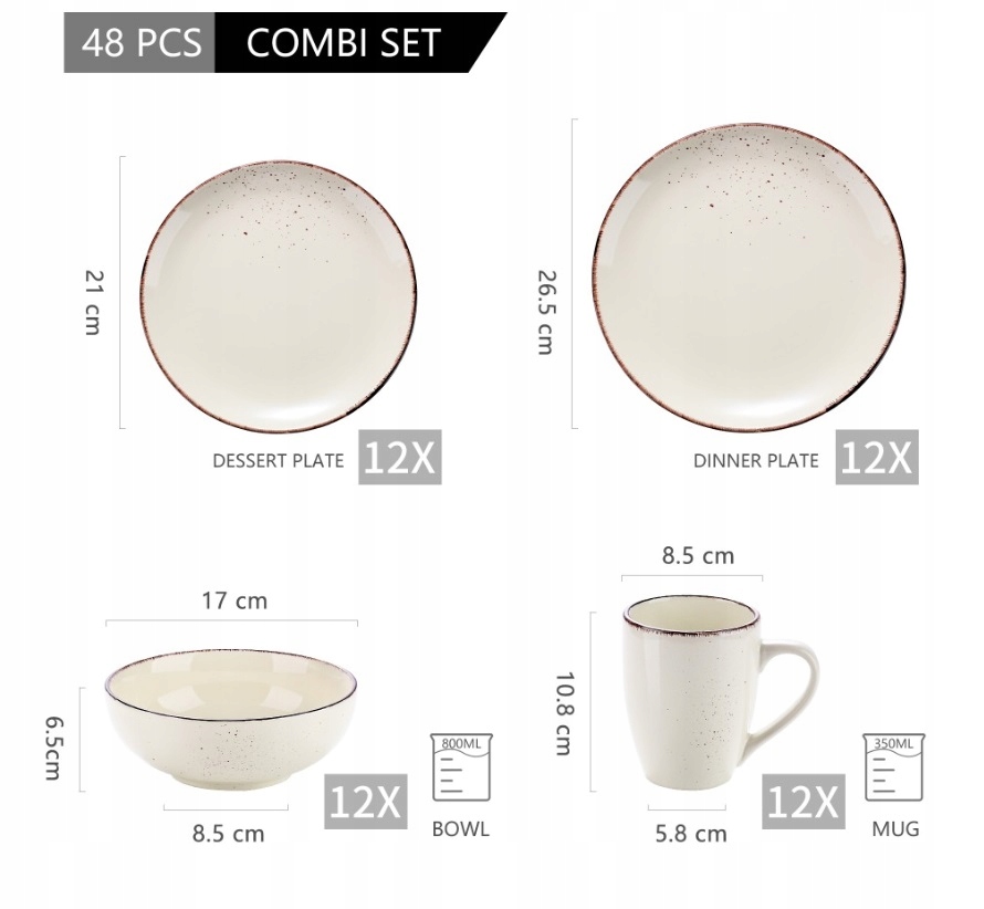 Сервіз столовий VANCASSO NAVIA Natur 48 шт./ 12 чол