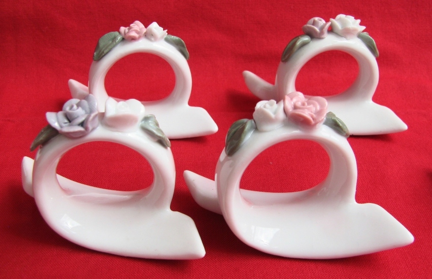 Serwetniki obrączki na serwetki * prcelana * RÓŻYCZKI - 7 sztuk