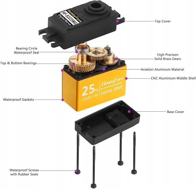 Serwo cyfrowe aluminiowe 25KG wodoodporne do samochodów RC 1/8 1/10