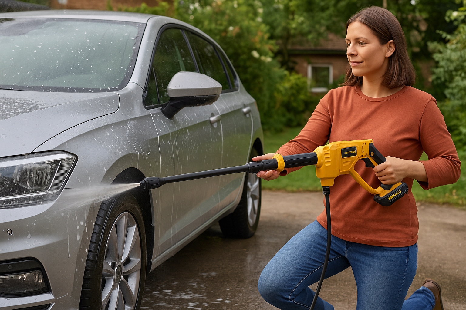 - Универсальное использование — можно мыть машину, велосипед, террасу, фасад, брусчатку, барбекю или садовую мебель.
