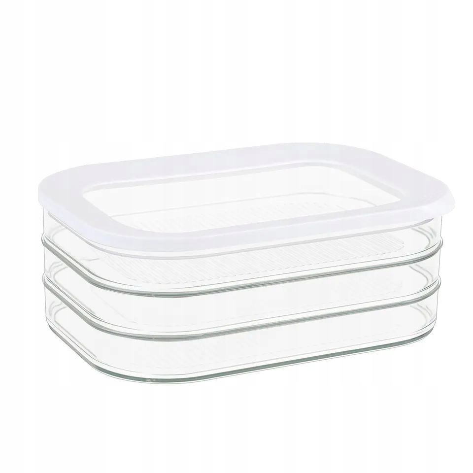 Практичный прозрачный трехъярусный контейнер для продуктов с прозрачной крышкой, позволяющей проверять содержимое, не открывая его.