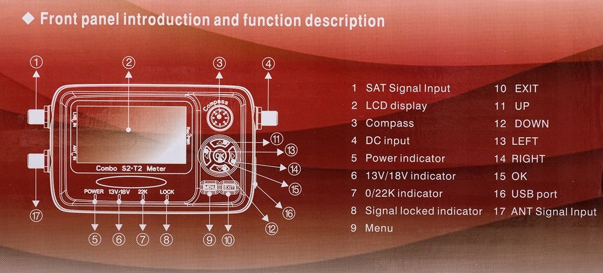 Простой спутник-сигнал модели Satlink модели SF-560 с помощью ЖК-дисплея, который позволяет легко и точно устанавливать сателлитную антенну на правый спутник. Измеритель имеет дюжину или около того спутниковых положений (спутники + транспондеры), также возможно редактировать каждый параметр. Модель SF500 имеет измерение канала DVB -S2 - HD.