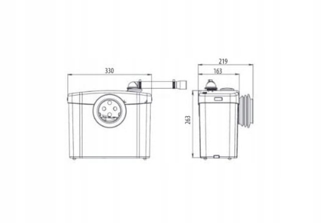 Насос-измельчитель для унитаза оснащен двумя входными отверстиями, позволяющими подключить унитаз, умывальник или писсуар. Он может заменить более раннюю модель без необходимости изменения соединений. Устройство для использования с традиционным унитазом. Перекачивает сточные воды на высоту 5 м и расстояние до 100 м.