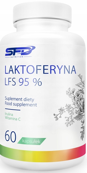 SFD LACTOFERRINA LFS 95% — высококачественный лактоферрин в капсулах. Благодаря высокому содержанию инулина и витамина С добавка поддерживает иммунитет, работу кишечника и действует как антиоксидант. LACTOFERRYNA LFS 95% предназначен для всех людей, которые хотят поддержать свою бактериальную флору и повысить иммунитет организма.